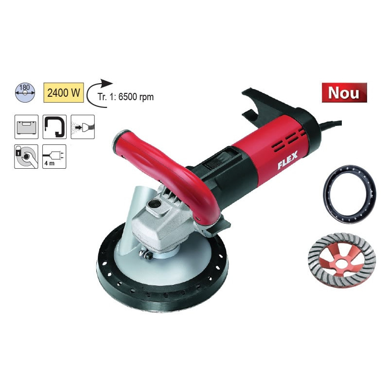 • Inel de cauciuc pe suport metalic, foarte rezistent pentru protectie impotriva raspandirii prafului si pietrelor din beton. Usureaza deplasarea masinii pe suprafata prelucrata.