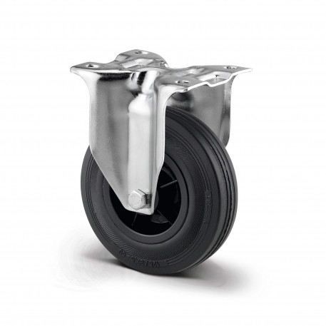 Jantă din polipropilena. Suprafaţă de rulare din cauciuc plin negru, rulment cu role ace.