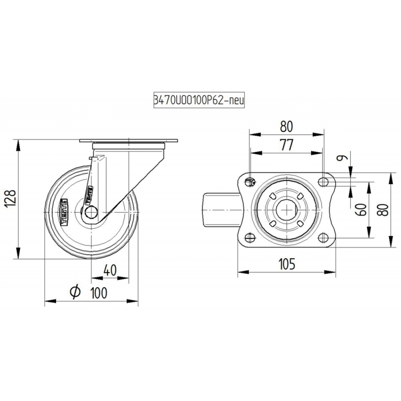 | Diametru roata | 100 mm |