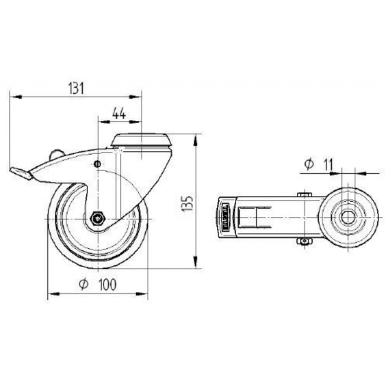 Janta din polipropilenă, suprafata de rulare din cauciuc termoplastic ,rulment plan (bucşă antifricţiune).