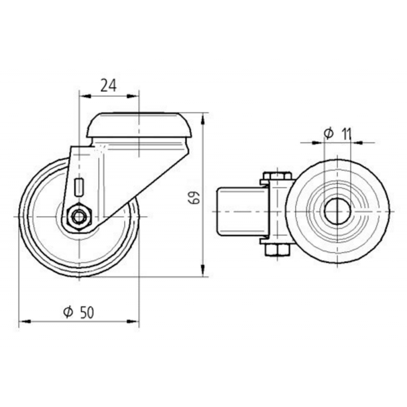 Jantă din polipropilenă, Suprafaţă de rulare: cauciuc termoplastic, rulment plan (bucşă antifricţiune).