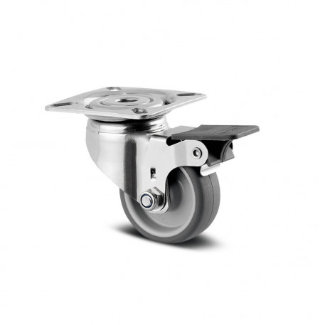 Jantă din polipropilenă, suprafaţă de rulare din cauciuc gri tip (cauciuc termoplastic), non-marking, rulment plan (bucşă antifricţiune)