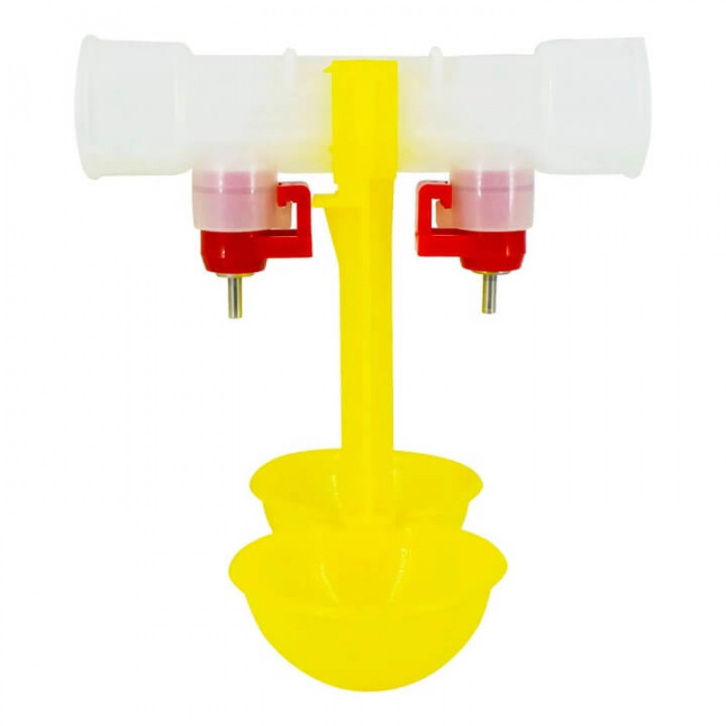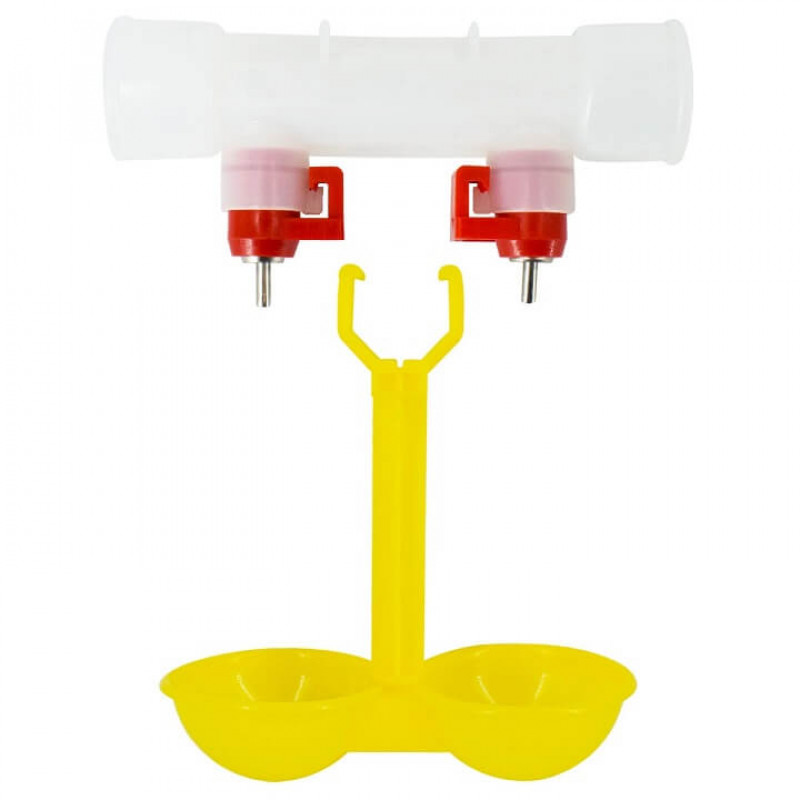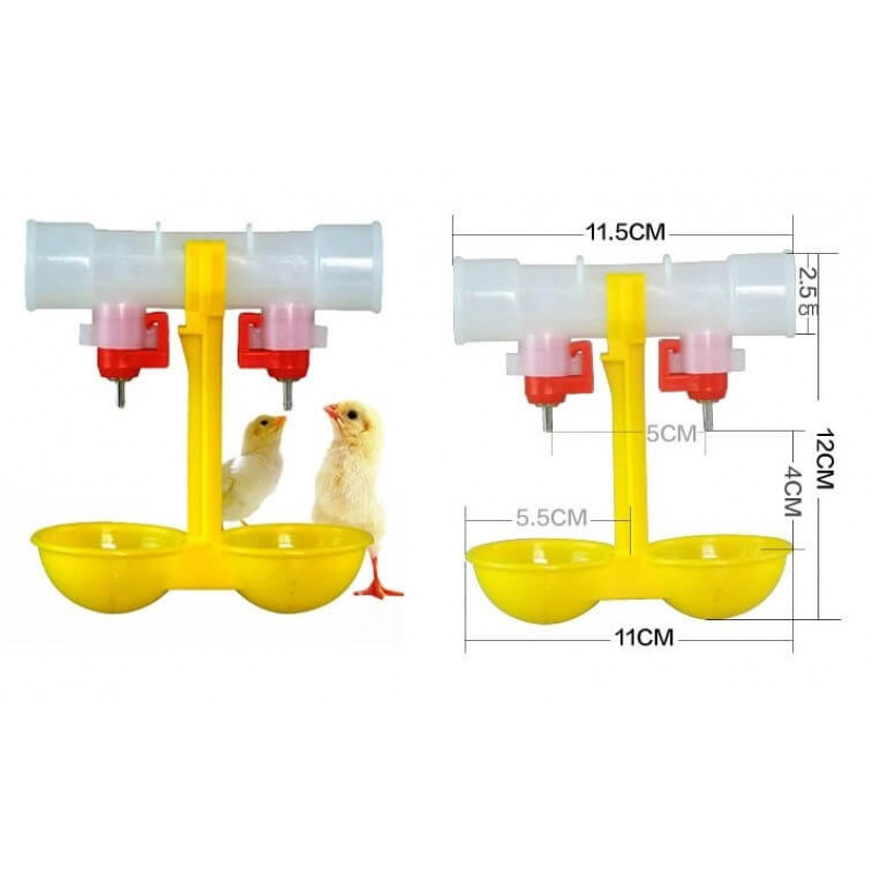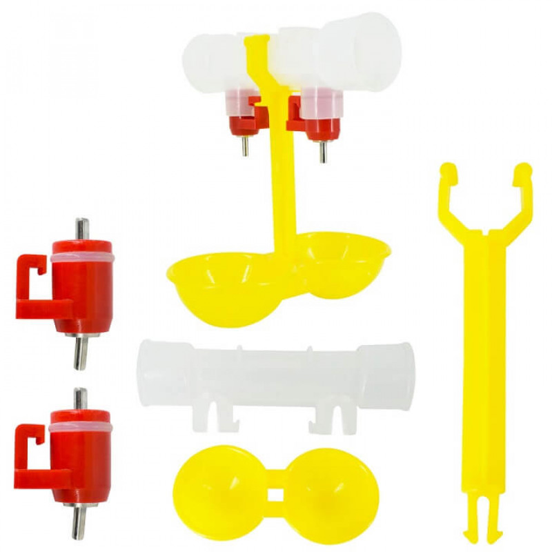 adapatorile cu niplu - suzeta si tavita pentru apa se monteaza pe bara sau teava din PPR de 25 mm (DN25x3.5). Aceasta se gaureste cu un burghiu de 8 mm la intervale de 25-30 cm aliniate longitudinal pe teava, apoi se debavureaza (se curata resturile de plastic de la gaurire). Se introduc adapatorile cu mufa si garnitura de silicon in aceste gauri, apoi se inchid colierele bratară cu auto-inchidere.