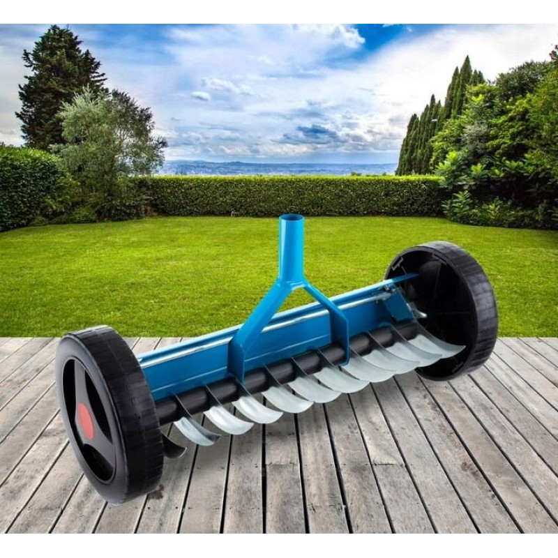 Scurta descriere: Aeratorul manual pentru gazon este un instrument esential pentru intretinerea corecta a peluzei. Acesta ajuta la aerarea solului si la taierea usoara a stratului de iarba, favorizand cresterea sanatoasa si regenerarea gazonului. Ideal pentru utilizare in orice conditii, fara a necesita alimentare.