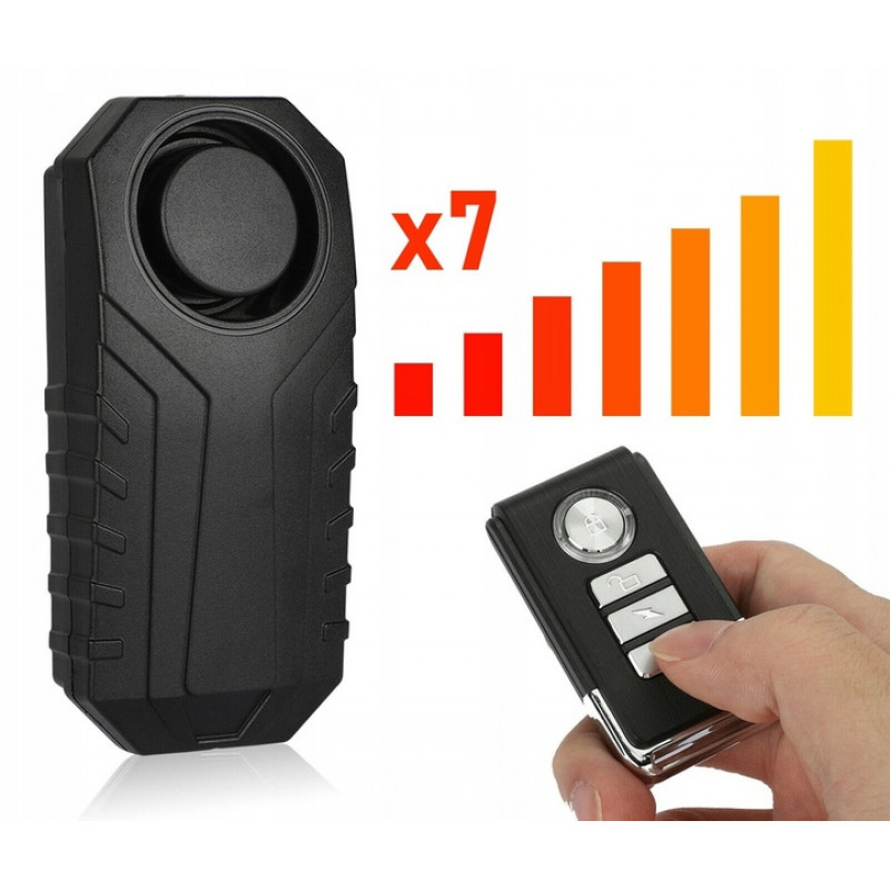 3x niveluri de volum Alarma de bicicleta cu telecomanda este un dispozitiv eficient de securitate pentru biciclete de sine statator sau un supliment la securitatea standard a bicicletelor cu un cablu. De indata ce hotul misca bicicleta - pentru a o indeparta de locul in care a fost lasata - o alarma foarte puternica se va declansa. In plus, atunci cand acesta intervine asupra cablului, alarma - datorita vibratiilor generate - activeaza o sirena. EFICACITATE Alarma este foarte puternica - asemanatoare cu volumul unei alarme auto. Atunci cand se declanseaza o astfel de alarma, aceasta atrage cu siguranta atentia tuturor celor din apropiere. TELECOMANDA Este inclusa o telecomanda, care functioneaza la fel ca o telecomanda de masina. Are 3 butoane. Unul pentru a activa alarma atunci cand lasam bicicleta nesupravegheata. Armeaza alarma si de atunci, fiecare miscare a bicicletei activeaza alarma. Celelalte sunt folosite pentru a seta volumul alarmei si sensibilitatea la miscare (astfel incat alarma sa nu se declanseze fara motiv). UNIVERSAL Alarma se potriveste la orice bicicleta - de obicei este montata pe partea laterala a cadrului, dedesubt. Alarma va functiona si la multe alte vehicule, cum ar fi un scuter, carucior, rulota, masini mici si chiar intr-un cadru de fereastra.Mai intai, instalati alarma pe cadru. Orice incercare de a demonta alarma cu forta va duce la activarea sirenei. Cand doriti sa parasiti vehiculul, trebuie sa armati alarma, care activeaza protectia dupa cateva secunde. AJUSTARE COMPLETA Alarma a fost proiectata astfel incat volumul semnalului si sensibilitatea senzorului de miscare sa poata fi ajustate.Instalare usoara si rapida fara gaurire - doar lipiti senzorul intr-un loc discret - senzorul sensibil impiedica un hot sa scoata dispozitivul fara a declansa alarma! FUNCTIA DE LOCALIZARE VEHICULE Alarma este echipata cu o functie SOS care detecteaza locatia bicicletei.