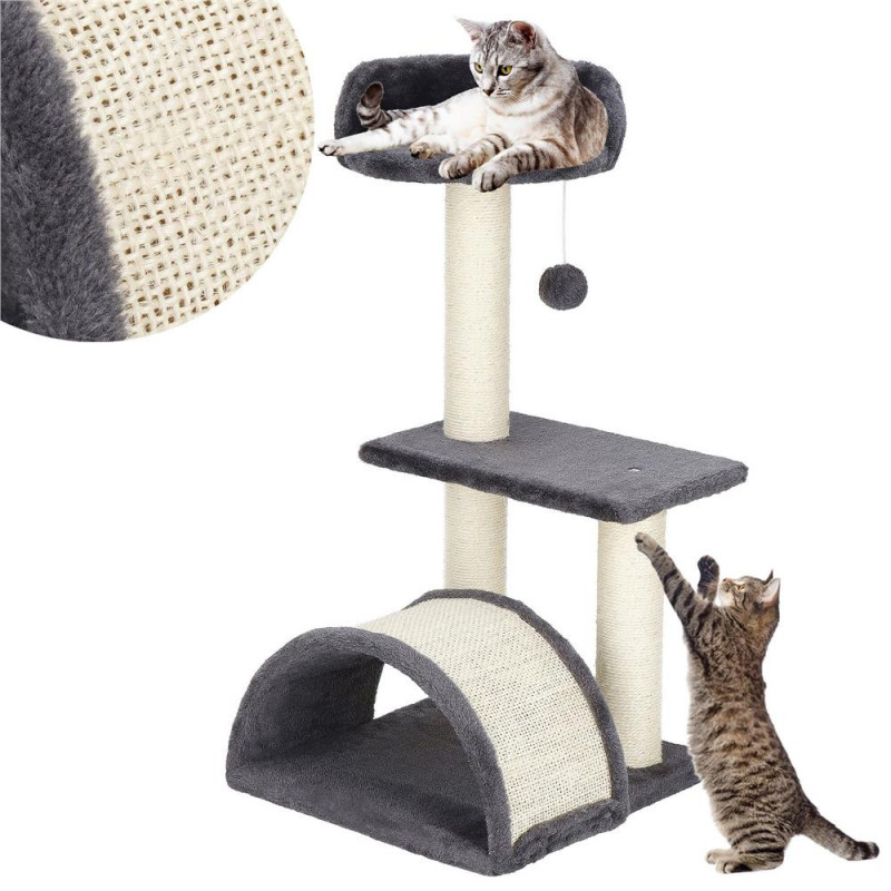 Materiale naturale, sigure pentru pisici: sfoara din jurul stalpilor nostri de zgariere este fabricata din sisal, o fibra tare si foarte durabila. Acesta este cu siguranta momentul potrivit pentru a oferi pisicii tale iubite un loc ideal de dezvoltare, joaca si odihna. Locul nostru de joaca nu este doar o piesa de mobilier, este o oaza de placere pentru animalul tau de companie. Nu mai astepta - ofera pisicii tale un cadou care ii va ridica calitatea vietii la un nivel complet nou!