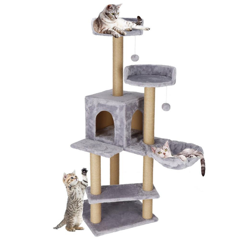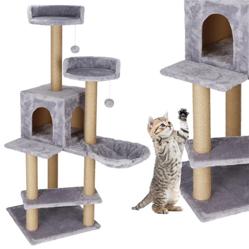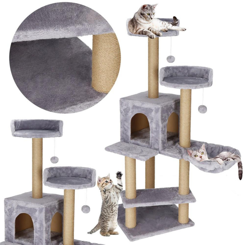 Materiale naturale, sigure pentru pisici: sfoara din jurul stalpilor este fabricata din sisal, o fibra tare si foarte durabila. Acesta este cu siguranta momentul potrivit pentru a oferi pisicii tale iubite un loc ideal de dezvoltare, joaca si odihna. Locul nostru de joaca nu este doar o piesa de mobilier, este o oaza de placere pentru animalul tau de companie.
