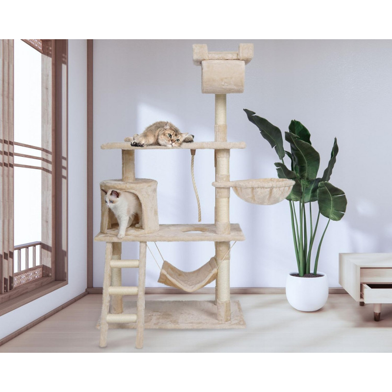 Materiale naturale, sigure pentru pisici: sfoara din jurul stalpilor este fabricata din sisal, o fibra tare si foarte durabila. Acesta este cu siguranta momentul potrivit pentru a oferi pisicii tale iubite un loc ideal de dezvoltare, joaca si odihna.