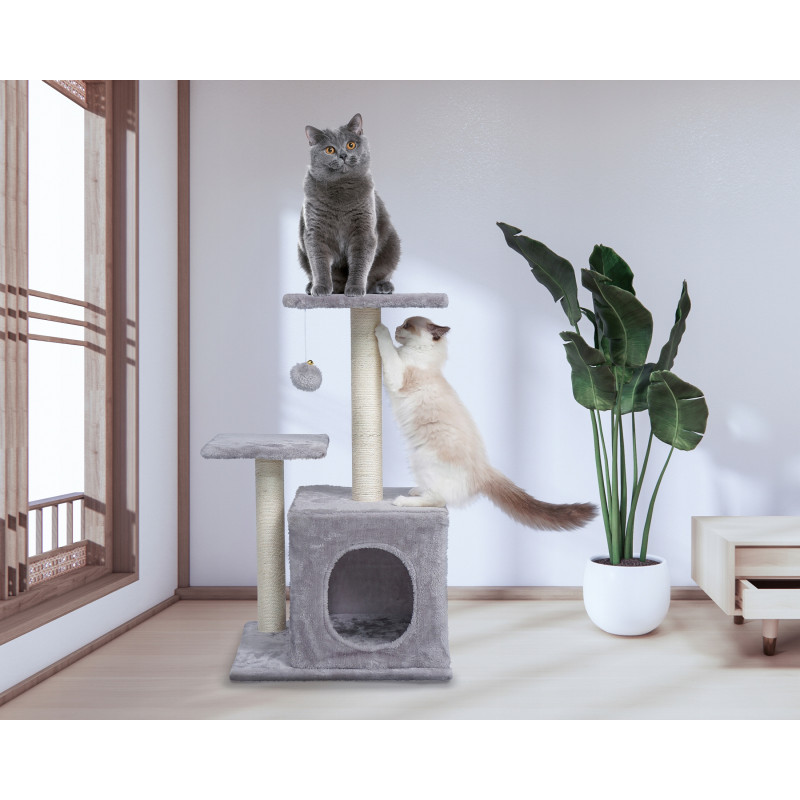 Culoare: gri Cu siguranta va deveni locul preferat al pisicii tale! Este spatiul perfect pentru joaca, dar si pentru relaxare, pisicile se pot odihni intr-unul dintre patuturi sau se poate urca pe platforma mai inalta.