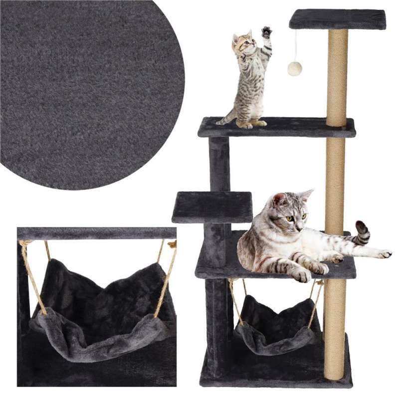 Materiale naturale, sigure pentru pisici: sfoara din jurul stalpilor este fabricata din sisal, o fibra tare si foarte durabila. Acesta este cu siguranta momentul potrivit pentru a oferi pisicii tale iubite un loc ideal de dezvoltare, joaca si odihna. Locul nostru de joaca nu este doar o piesa de mobilier, este o oaza de placere pentru animalul tau de companie. Nu mai astepta - ofera pisicii tale un cadou care ii va ridica calitatea vietii la un nivel complet nou!
