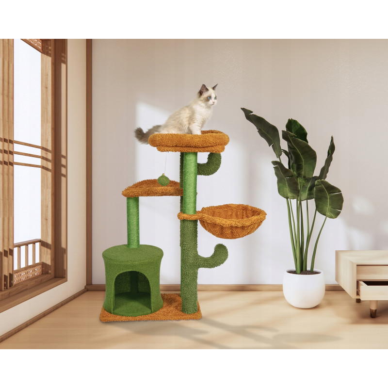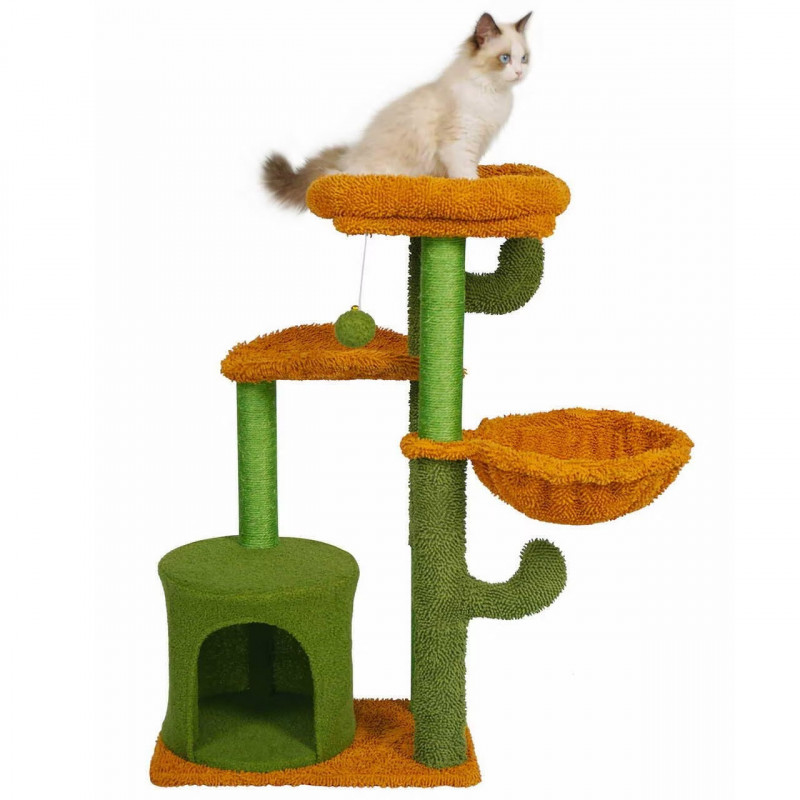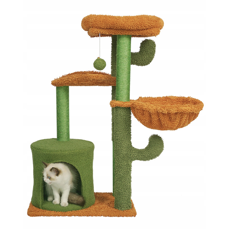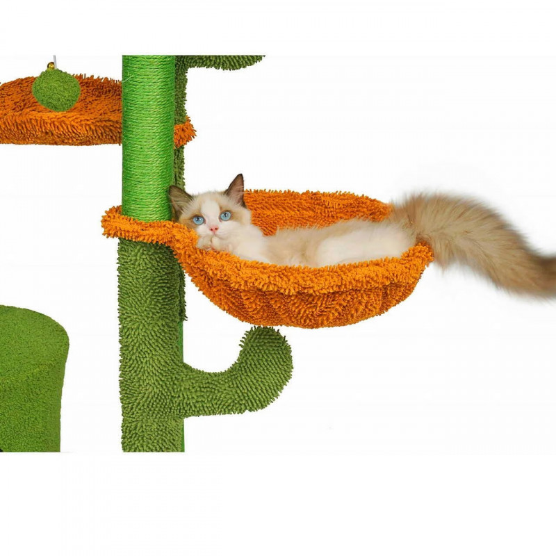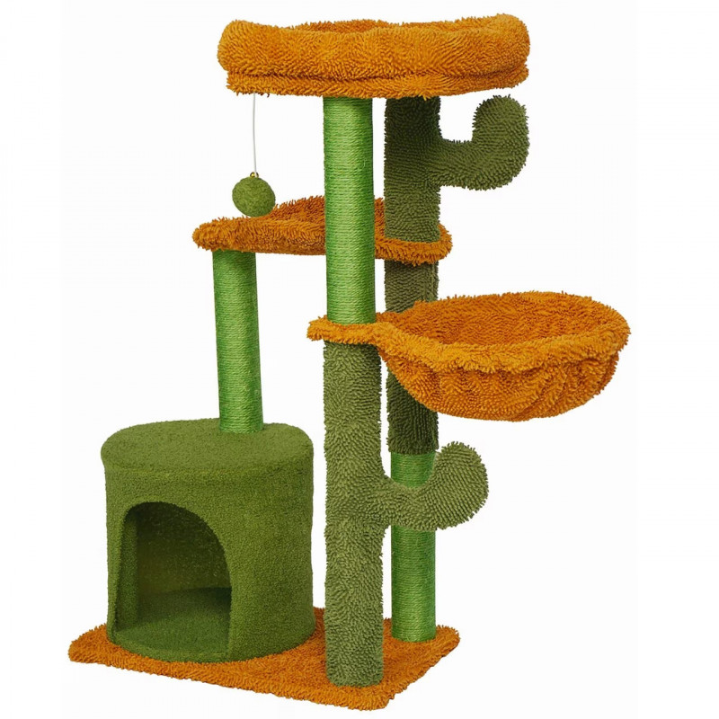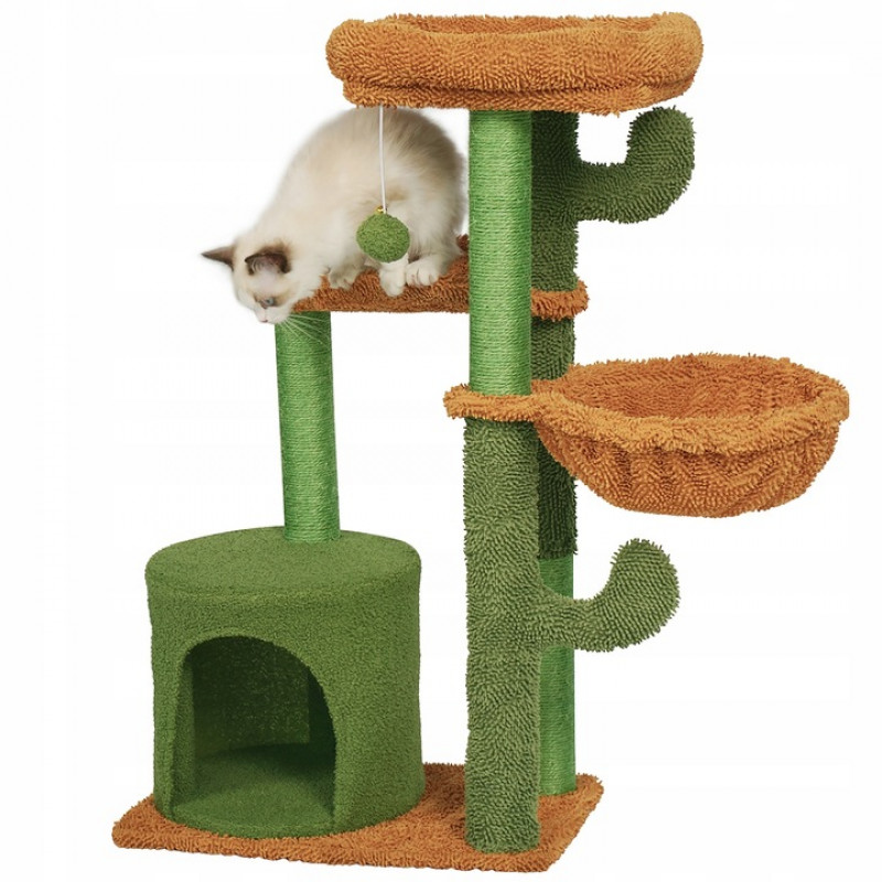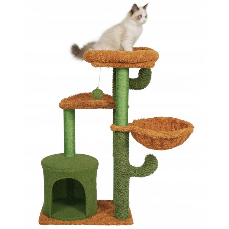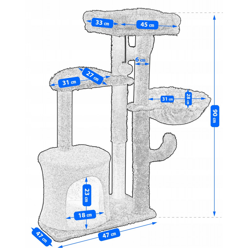 Caracteristici: Cu siguranta va deveni locul preferat al pisicii tale! Este spatiul perfect pentru joaca, dar si pentru relaxare, pisicile se pot odihni intr-unul dintre patuturi sau se poate urca pe platformele inalte.Ansamblul de joaca este echipat cu o biluta cu snur elastic, menit sa distraga animalutele si sa le tina ocupate pentru multa vreme. Acesta este agatat de platforma din varf, care reprezinta o adevarata provocare pentru acestea deoarece ele sunt mereu dornice de explorare.Intregul set este fabricat din materiale de inalta calitate, rezistente la zgarieturi si deteriorari.Se monteaza si se instaleaza rapid si simplu, fara dificultati.Baza din material pufos este responsabila de stabilitatea ansamblului si poate fi utilizata si ea ca loc de odihna de catre micile noastre prietene cu blanita.