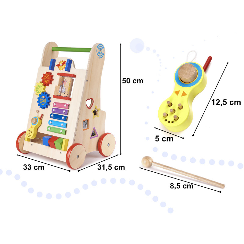Scurta descriere Antemergatorul din lemn pentru copii este o jucarie multifunctionala care ajuta la primii pasi si ofera activitati interactive pentru dezvoltarea abilitatilor motorii si cognitive.