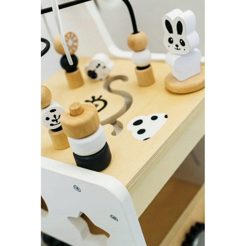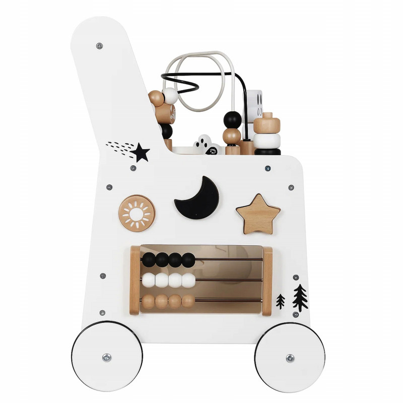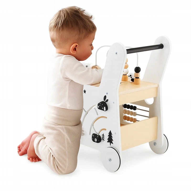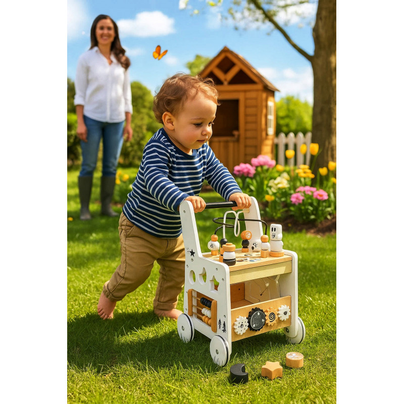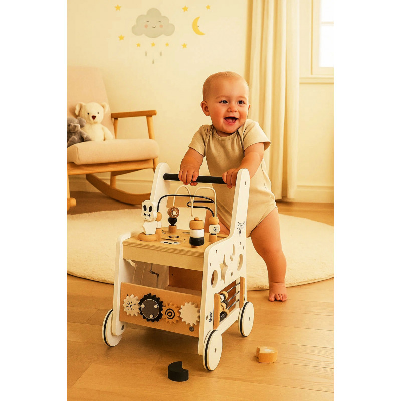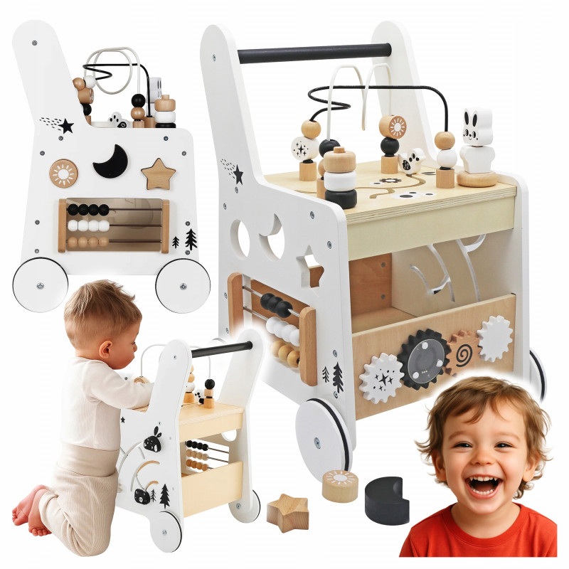 Scurta descriere: Antepremergatorul din lemn este o jucarie multifunctionala ideala pentru primii pasi ai copilului. Ajuta la dezvoltarea echilibrului, coordonarii si abilitatilor motorii, oferind in acelasi timp activitati interactive care stimuleaza invatarea prin joaca. Constructia stabila si designul prietenos il fac un partener sigur si atractiv pentru cei mici.