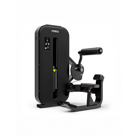 SPECIFICATII TEHNICE- Cadrul din oțel armat de 3 mm.@- Tratament antirugină și protecție specială la punctele de sudură.@- Acoperire cu pulbere de poliester la 200º în negru mat.@- Polițe de transmisie FIBABS, cu rulmenți cu bile, realizate din material compozit foarte rezistent la frecare și adaptate la diametrul cablului.@- Cablu de transmisie cu grosimea de 6 mm, extrem de flexibil și rezistent. Include tensor pentru reglarea tensiunii.@- Protecție de încărcare termoformată față și spate, termoformată neagră capace de protecție a sarcinii.@- Opțional: personalizarea capacelor.- Tavă dublă suport obiecte în partea superioară.@- Scaunele și spătarele sunt nedeformabile sub presiune, realizate din poliuretan injectat (spumă).@- Tapițerie antibacteriană MRSA, SANITIZATĂ, ignifugă Standard M2, UNE 1021 și fără solvenți și substanțe nocive Standarde OEKO-TEX. Cusături roșii intense.@- Mânere de reglare realizate din aluminiu anodizat pentru a preveni rugina.- Mânere injectate cu material de cauciuc antiderapant, neporos.@- Scaun anatomic.@- Goniometru din oțel inoxidabil cu 5 poziții pentru reglarea poziția de pornire/unghiul exercițiului.@- Înălțimea brațului manetei reglabilă.- Mânere injectate cu cauciuc antiderapant.@- Ghidaje pentru plăci din oțel inoxidabil.@- Plăci de 5 kg cu bucșe cu frecare redusă.@- Selector de sarcină cu sistem de siguranță magnetic și clemă pentru cablu.@- Sarcina de lucru: 75 kg.@- Pictogramă de descriere a exercițiului.@- Cod QR cu acces la video de utilizare a mașinii.@- Dimensiuni: 110x100x157 cm.@- Declarație de conformitate CE.@- Utilizare comercială.