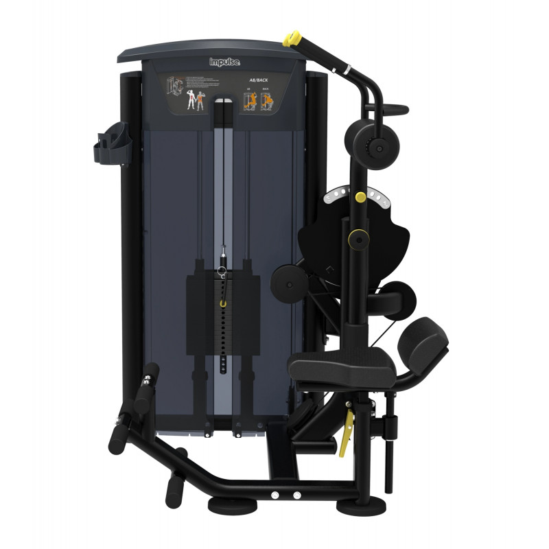 Aparatul pentru abdomen si hiperextensii spate IT 9534, face parte din seria de echipamente profesionale, ce ofera utilizatorilor o experienta de antrenament premium la o valoare excelenta. Ofera confort sporit, datorita tapiteriei din poli-spuma de inalta densitate si cusaturilor duble care ofera rezistenta sporita. Cadru din otel este rezistent la tensiune, la fel si cablurile de otel cu invelis de nylon.Prezinta suport pentru sticla de apa fixat pe cadru.Prezinta manere ergonomice din material TPV cu capac de aluminiu, ce ofera confort si siguranta in timpul antrenamentului. Sistemul de reglare a scaunului permite un reglaj usor a acestuia, sporind confortul. Functioneaza pe baza de scripeti din fibra de sticla cu canale in forma de V. Greutate produs: 130 kg plus 107 kg stive de greutati. Dimensiune aparat: 1196 x 1189 x 1506 mm.Producator: Impulse Fitness.