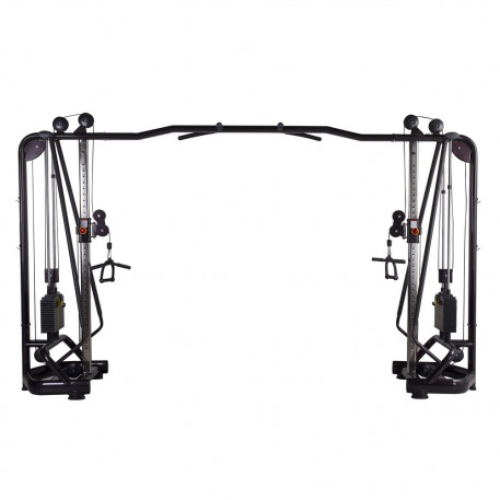 Aparatul de fitness Crossover este complex, o unitate pe cablu extrem de versatila care antreneaza o verietate de grupe musculare precum fesieri, solduri, coapse, biceps, triceps, dorsal mare, pectoral si deltoizi.@ Permite antrenarea mai multor persoane in acelasi timp deoarece are doua statii pe cablu, unite printr-o bara dotata cu manere pentru tractiuni la mijloc. Permite atasarea de manere pentru exercitii diversificate si scripeti reglabili.Specificatii:Latime: 870 mmLungime: 3885 mmInaltime: 2325 mmGreutate: 336 kgGreutati incluse: 2x80 kgMaterial: otelMuschi vizati: pectorali, muschii dorsali, muschii bratelorGreutatea maxima de antrenament este de 150 kgGreutate max utilizator bara tractiuni: 150 kgProducator: MS Fitness