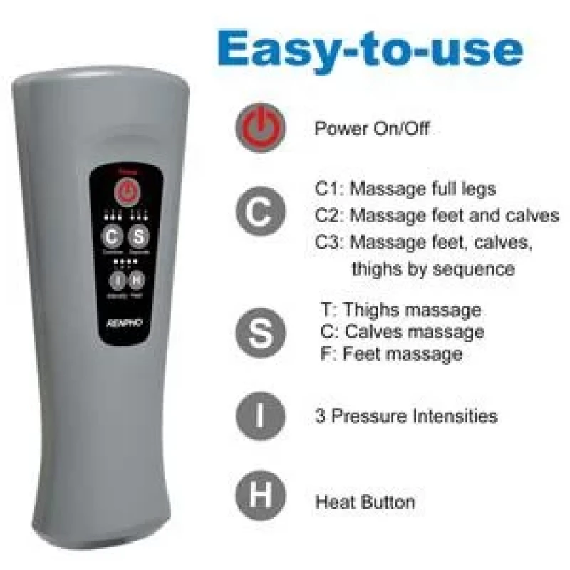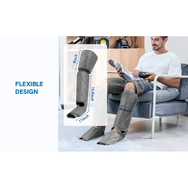 Manșoanele pentru coapse și gambe pot fi detașate și utilizate separat, astfel încât să poți alege să masezi o singură zonă sau întregul picior simultan. De asemenea, manșoanele pentru coapse pot fi folosite și pentru brațe, oferind o versatilitate ridicată.
