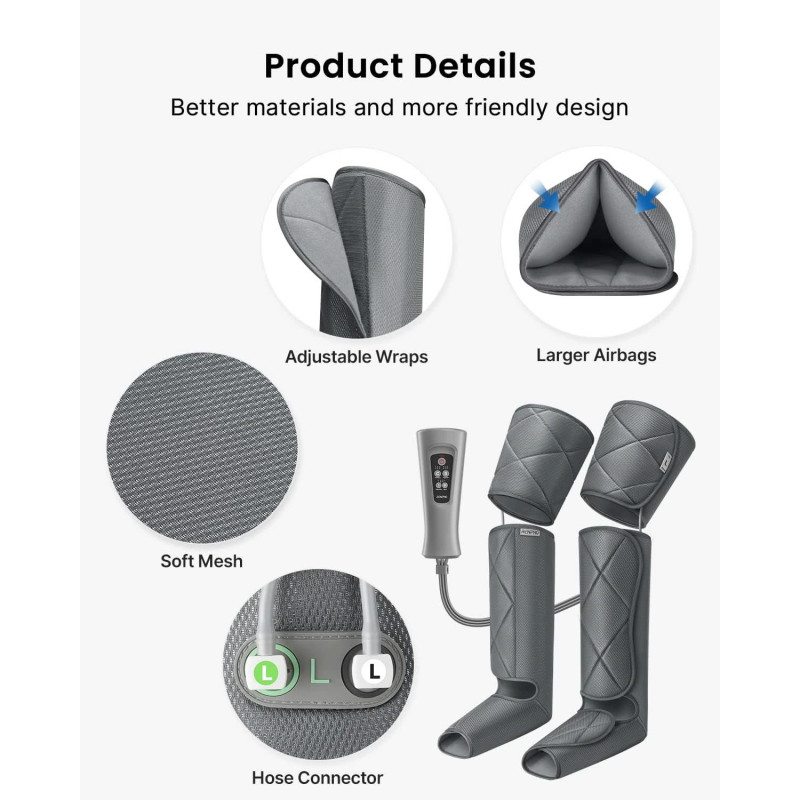 Alege nivelul dorit de compresie cu aer pentru o experiență de masaj personalizată.