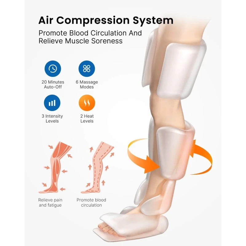Aparatul de masaj pentru picioare tip cizme cu compresie aer și încălzire oferă o relaxare profundă și eficientă. Conceput pentru a stimula circulația și a reduce oboseala musculară, acesta utilizează presiune controlată și căldură pentru un efect terapeutic complet. Ideal pentru utilizare acasă, după o zi lungă sau antrenamente intense, dispozitivul include control manual pentru ajustarea ușoară a setărilor.