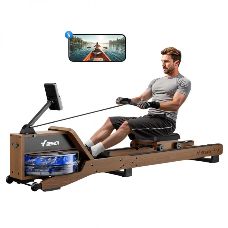Aparat de Vâslit cu Apă MERACH R23 – Experiență Realistă, Rezultate CompleteTransformă-ți antrenamentele de acasă într-o experiență autentică de vâslit cu MERACH R23 Water Rowing Machine, un echipament premium care combină rezistența naturală a apei cu un design elegant și tehnologie modernă. Ideal pentru cei care își doresc un antrenament cardio eficient, cu impact redus asupra articulațiilor, dar cu rezultate vizibile asupra întregului corp.@Rezistență Naturală pe Apă – Senzație AutenticăSistemul de rezistență pe bază de apă oferă o mișcare fluidă și realistă, similară vâslitului pe lac. Cu cât tragi mai puternic, cu atât rezistența crește natural, oferind un antrenament progresiv și dinamic. Intensitatea poate fi ajustată prin modificarea nivelului de apă din rezervor.@Antrenament Full-Body în Fiecare SesiuneAparatul activează până la 85–90% din grupele musculare:Picioare (cvadricepși, bicepși femurali, gambe)Spate și lombariAbdomenBrațe și umeriEste perfect pentru:✔ Arderea caloriilor✔ Creșterea rezistenței cardiovasculare✔ Tonifiere musculară✔ Recuperare și antrenamente cu impact redus@Design Premium din Lemn NaturalConstruit din lemn rezistent de calitate superioară și oțel durabil, MERACH R23 oferă:Stabilitate excelentă în timpul antrenamentuluiAbsorbție eficientă a vibrațiilorAspect elegant, potrivit pentru orice locuință modernăDesignul vertical permite depozitarea ușoară, economisind spațiu.Monitorizare Inteligentă @ Conectivitate BluetoothEchipat cu display LCD intuitiv care afișează:TimpDistanțăCaloriiNumăr de stroke-uriStroke-uri pe minutConectivitate Bluetooth pentru integrare cu aplicații fitness compatibile, astfel încât să îți urmărești progresul și să îți personalizezi antrenamentele.Confort și ErgonomieȘină glisantă fluidă pentru mișcare naturalăScaun ergonomic pentru sesiuni confortabileSuporturi pentru picioare reglabile cu fixare sigurăMâner anti-alunecare pentru priză fermăPotrivit pentru utilizatori de diferite înălțimi, cu o capacitate mare de susținere a greutății.De ce să alegi MERACH R23?✔ Antrenament complet într-un singur aparat✔ Rezistență naturală, fără șocuri asupra articulațiilor✔ Design premium, potrivit pentru acasă✔ Funcționare silențioasă și plăcută✔ Tehnologie modernă pentru monitorizare eficientăMERACH R23 Water Rowing Machine este alegerea ideală pentru cei care doresc performanță, confort și un echipament elegant pentru antrenamente regulate acasă.