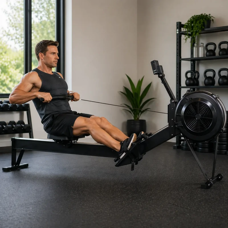 Aparatul de vâslit profesional cu rezistență combinată aer + magnetică este alegerea ideală pentru antrenamente cardio complete și eficiente, fie acasă, fie într-o sală de fitness.