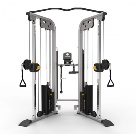 Acest aparat Dual Function a fost conceput pentru training functional individual sau la nivel de grup.Permite realizarea de exercitii statice sau dinamice, pentru diferite grupe musculare: piept, spate, picioare, umeri, biceps, triceps, abdomen.Este echipat cu scripeti mobili ce se pot fixa in 31 de pozitii - pentru a evita blocajul si constrangerile datorate unui scripete fix. In acest fel, ofera posibilitatea realizarii unui antrenament complex, cu exercitii variate.Aparatul vine insotit de franghii pentru triceps, mansete pentru glezne, bara pentru tractiuni, 2 manere pentru tractiune, imagini cu instructiuni, suport pentru apa, prosop si telefon.Cadru din otel rezistent la tensiune.Cabluri de otel cu invelis de nylon.Scripeti din fibra de sticla cu canale in forma de V.Dimensiune produs: 173, 4 x 112,3 x 215 cmGreutate produs: 328 kgProducator: Impulse Fitness@