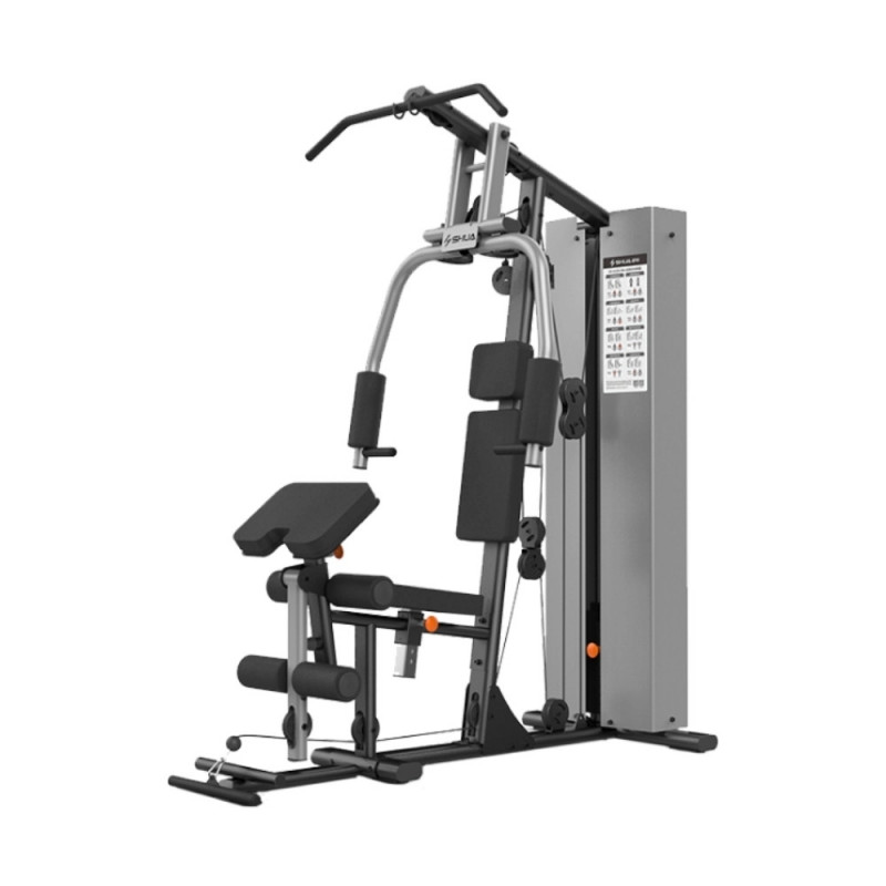 Prezentare generalăAparatul multifuncțional SH‑G5201, denumit și Single Station Home Gym, aparține liniei "Home Gym Fitness" de la SHUA, fiind o soluție compactă, completă și robustă pentru antrenamente rezidențiale cu stivă de greutăți integrate.Specificații tehniceDimensiuni:@ 1810 × 905 × 2080 mm.Stivă de greutăți: 66 kg (11 plăci).Greutate netă: 166 kg; greutate brută: ~180 kg.Tub cadru: profil oval 100 × 50 mm (grosime 2,0 mm).Tratament anti-static și anti-rugină; cabluri japoneze rezistente, auto-lubrifiabile, capacitate de rupere ~1400 kg.FuncționalitatePermite efectuarea a numeroase exerciții prin un singur aparat:Presă piept (chest press)Ramat șezând (seated row)Fluturări pectorale (pec fly)Lat pulldownExtensie picioare (leg extension)Preacher curl (biceps)Triceps push-downLow rowStanding leg curl@Grupuri musculare antrenatePectorali mari – prin presa piept și pec fly.Deltoid anterior și medial – implicare în fluturări și presă.Triceps și biceps – prin push‑down și curl.Spate (dorsali, romboizi) – prin ramat și lat pulldown.Cvadricepși (leg extension) și ischiogambieri (standing curl)Și chiar mușchi sartorius pentru întinzere și flexibilitate.Avantaje principaleCompact și eficient – ideal pentru spații de tip home gym cu opțiuni variate de exerciții.Construcție solidă și sigură – stivă integrată, cadru robust, finisaje anti‑rugina, cabluri japoneze de calitate — testate pentru durabilitate peste 900.000 de cicluri.Versatilitate ridicată – un singur aparat pentru antrenament complet de upper- și lower-body.Confort ergonomic – poziționare corectă și ajustări rapide pentru utilizatori diferiți.RezumatCaracteristicăDetaliiModelSH‑G5201 Single Station Home GymDimensiuni (L×l×Î)1810 × 905 × 2080 mmStivă greutăți66 kg (11 plăci)Tip tubOval 100 × 50 mm, grosime 2 mmFuncții principaleChest press, pec fly, row, lat pull-down, leg extension, curl, etc.Mușchi vizațiPiept, spate, brațe, picioareCalitate cabluriJaponeze, rezistență mare (1400 kg)Greutate aparat~166 kg net / 180 kg brut@