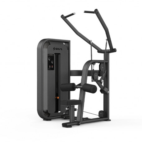 Funcționalitate principalăTip exercițiu: Lat pulldown – ideal pentru dezvoltarea mușchilor latissimus dorsi, trapezului și bicepsului. Aparatul oferă o mișcare ghidată, ergonomică, ușor de controlat.Greutate selectorized: stack de greutăți ajustabil, între 5 kg și 90 kg.Construcție @ materialeCadrul robust: oțel Q235A cu tubulatură 150×50×2,0 mm pentru cadrul principal și 120×50×2,0 mm pentru subcadru.Cablu și role premium: cablu de oțel acoperit PA de Ø 5,6 mm și role nylon ranforsat, pentru o funcționare lină și durabilă .Tapiserie reglabilă: șezut din PU foam (culoare negru), reglabil pe înălțime pentru adaptabilitate optimă .Dimensiuni @ greutateDimensiuni asamblate: aprox. 1323 × 1168 × 1920 mm (L×l×î) – adaptabil spațiilor de sală.Greutate stack: 90 kg@Greutate netă: 220 kg; brut—≈280 kg cu ambalaj.Musculatură vizatăLatissimus dorsi – principalul mușchi lucratTrapez și romboizi – stabilizare și tracțiuneBiceps – sinergie la flexie brațElectrocardiograma mișcării susține un antrenament eficient pentru spate și brațe.Ergonomie @ confortMânere oversize @ lungi: asigură prindere stabilă, flexibilă și confortabilă .Suport tibii ajustabil: menține poziția corectă a utilizatorului în timpul tracțiunii (disponibil la unele distribuitori, ex. Apollo) .Mișcare ghidată cu siguranță: traiectorie controlată, stack complet învelit – protecție anti-prindere și risc minim de accidentări .Durabilitate @ design profesionalCalitate industrială: testat pentru peste 900.000 de cicluri de utilizare, fabricat pentru mediile comerciale cele mai exigente.Finisaj premium: coloristică elegantă "Black Silver @ Flash Silver Black Ash", estetic — potrivit spațiilor moderne.Garanție comercială: 7 ani pe cadru la distribuitorii autorizați .Puncte forte – rezumatAvantajDetaliiConstrucție solidăOțel Q235A, cablu Ø 5,6 mm, role ranforsateStack generos90 kgErgonomie și siguranțăMânere lungi și oversize, mișcare ghidată, stack învelitConfort superiorȘezut reglabil, suport tibii (opțional)Durabilitate pentru săliTestat intensiv, garanție extinsă, design elegant@Recomandări @ utilizareIdeal pentru: săli profesionale, centre de antrenament, clinici de reabilitare și home-gym cu pretenții.Profil utilizator: de la începători la avansați – ideal pentru forță, definire și stabilitate a spatelui.@