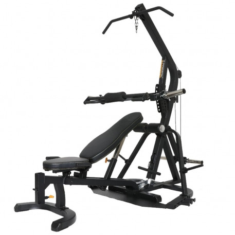 Aparatul multifunctional Workbench Levergym@(WB-LS)@este unul dintre cele mai functionale si complete sisteme de antrenament cu o singura statie create vreodata. Bratele laterale pot sustine in siguranta pana la 227 de kilograme, iar banca de exercitii detasabila, poate fi indepartata pentru a efectua o multitudine de exercitii suplimentare. Lista exercitiilor este aproape nesfarsita, in special cu multiplele accesorii care pot fi atasate bancii incluse. O adevarata sala de fitness intr-un singur aparat!Sistemul de parghii este reglabil, la fel si banca, oferind diferite unghiuri de inclinare a spatarului. Bratul de parghie reglabil pe verticala inclocuieste pur si simplu bara cu greutati, facand acest sistem pe baza de parghii sa fie cea mai sigura si eficienta forma de antrenament de rezistenta.Incarcarea greutatilor se face manual, direct pe manere, oferind o senzatie naturala, de control.Banca include roti pentru a usura manipularea ei si manere pentru siguranta in timpul efectuarii exercitiilor pentru picioare.Suportul pentru picioare ofera aparatului mai multa stabilitate.Tipuri de exercitii posibile: crunch, impins cu bara din culcat, din inclinat si declinat pentru piept, impins pentru umeri, flexii biceps, triceps, gambe, extensia si flexia picioarelor, genuflexiuni, ramat cu priza larga, etc.Cadrul este realizat din tub de otel de mare densitate, cu forma patrata si dreptunghiulara.Utilitatea aparatului este data de sistemul cu parghii care s-a dovedit a fi cea mai rapida si eficienta metoda de antrenament in sala de fitness sau acasa.Culoare disponibila: negru.Greutate maxima incarcabila: presa brate: 227 kg, cablu: 136 kgIncarcarea se face manual, utilizand discuri olimpice.Dimensiune produs (L x W x H): 206.7 x 146 x 207.5 cm. Greutate produs: 132 kgProducator: PowertecModelul 2020 aduce in plus: coarne inclinate din otel inoxidabil pentru discuri, cabluri cu banda de rezistenta adaugata, setari suplimentare la presa de brate, coarne de depozitare a discurior detasabile, tapiterie din material imbunatatit.@Powertec@este pionierul introducerii aparatelor pe baza de parghii pe care le-a adus in casele oamenilor si in salile de fitness, oferind posibilitatea persoanei care se antreneaza sa beneficieze de cea mai buna metoda de a-si tonifia si dezvolta corpul la potentialul sau maxim.