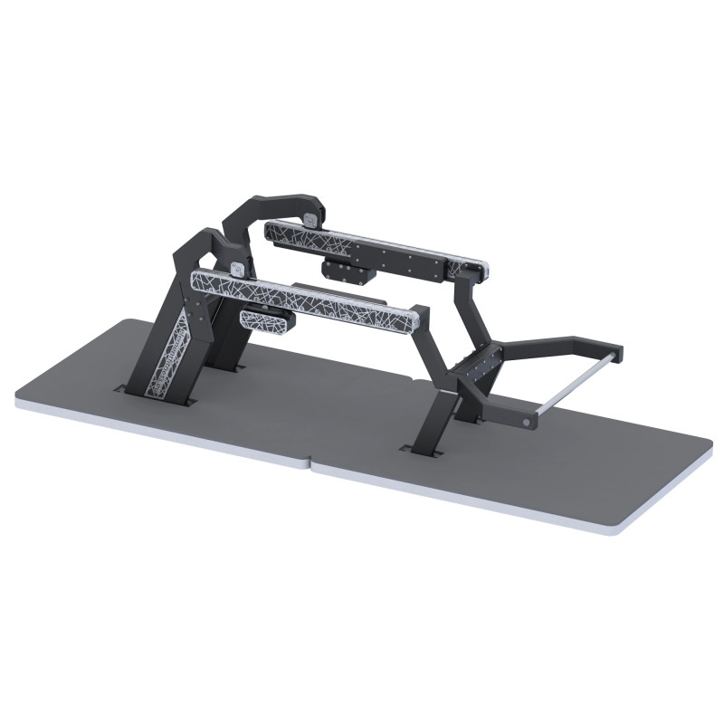 SPECIFICATII TEHNICE@- Lungime - 207,7 cm@- Latime - 106@- Inaltime maxima - 159,9 cm@- Zona necesara pentru antrenament - 220 x 200 cm@- Zona necesara pentru miscare - 497,8 x 409,1 cm@- Suprafata platforma - L x l x h - 240 x 120 x 6@@- Greutati reglabile@Echipamentul se poate monta direct pe suprafata de beton sau pe platforma din platic.