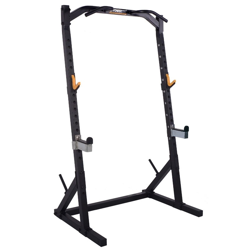 Aparatul tip cadru Half Rack WB-HR a fost proiectat urmand aceleasi specificatii ca la liderul Power Rack si este solutia perfecta pentru un antrenament serios intr-un spatiu limitat. Utilizatorul are optiunea de a-si extinde exercitiile in viitor, cu ajutorul barelor Dip optionale, aparatului Lat Tower (WB-LTO) sau bancii multifunctionale (WB-UB). Aparatul tip cadru Half Rack permite realizarea unei game variate de exercitii pentru biceps, triceps, piept, genuflexiuni. Atasand banca reglabila WB-UB se vor extinde tipurile de exercitii: presa piept, presa umeri, spate.Acest model este dotat cu un design nou ce permite realizarea tractiunilor. Prezinta de asemenea, un sistem numeric (spatii numerotate) pentru reglare repida. Manerele ergonomice sunt realizate astfel incat sa ofere utilizatorului mai mult confort.Cadru metalic rezistent la tensiune.Culoare: negru.Greutate suportata: 181 kg manere tractiuni, 453 kg cadruDimensiune produs (L x W x H): 126.23 x 90.93 x 210.82 cmGreutate produs: 80 kg. Producator: Powertec.