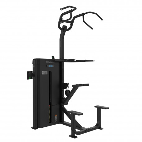 Concepție și construcțieFace parte din seria Forza Bold, destinată să ofere echipamente robuste, durabile și de înaltă performanță pentru săli de fitness și centre sportive premium.Structura este realizată din oțel carbon, sudat robotic, iar elementele mobile (ghișeele) sunt din oțel inoxidabil cu dublă cromare întărită, ceea ce asigură o alunecare lină și rezistență superioară.Conectivitate și ecosistemEchipamentul face parte din gama Forza Bold, care se remarcă prin adoptarea tehnologiei avansate și conectivitate Smart.Utilizează aceeași platformă tehnologică profesională promovată de Bodytone, incluzând compatibilitate cu aplicația MyBodytone și software-ul de management al sălilor de sport, Trainingym.@@Dimensiuni @ GreutateDimensiuni (L × l × H): aproximativ 131 cm x 149 cm x 250 cm.Greutate totală a aparatului: circa 221 kg.Pachet caracteristici tehniceSistem de greutăți asistate:Stack de greutăți: 107 kg, cu plăci de câte 7 kg fiecareConstrucție și durabilitate:Structură realizată din tuburi de oțel carbon:Parte structurală: 110 × 50 mm, grosime 2,5 mmPartea funcțională (cadru mobil): 100 × 50 mm, grosime 2,5 mm, sudate robotic și fără elemente ce pot cauza accidentăriBază și stabilitate:Picioare acoperite cu cauciuc antiderapant, pentru o stabilitate sporită.Scripete și selector de greutate:Scripete realizate din nylon cu slot în V, prevăzute cu rulmenți interni, pentru funcționare silențioasă.Selector magnetic de greutăți, cu plăci color‑codate pe nivel de intensitate și cablu de siguranță.Confort @ tapițerie:Amortizarea și suporturile (platforme, scaun, spătar) sunt fabricate din spumă, tapițate cu material sintetic (“simile skin”), hipoalergenic și ușor de curățat .Tabel caracteristici tehnice:ComponentăSpecificații principaleDimensiuni131 × 149 × 250 cmGreutate aparat221 kgStack greutăți107 kg (7 kg/plăci)ConstrucțieOțel carbon, tuburi de 110×50 mm și 100×50 mm, grosime 2,5 mm, sudate roboticStabilitatePicioare antiderapante din cauciucScripeteNylon cu rulmenți, silențioaseSelector de greutateMagnetic, cu plăci color‑codate și cablu de siguranțăTapițerie @ finisajeSpumă, material “simile skin”, hipoalergenic și curățare facilă
