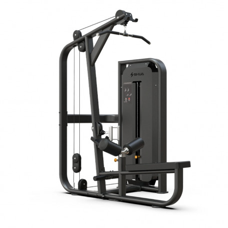 Prezentare generalăAparatul Tractiuni Spate si Ramat SH‑G6891A@este un echipament dublu (lat pulldown + ramat la cablu inferior) din seria 68 Selectorized, proiectat pentru săli comerciale și home‑gym-uri performante. Oferă două funcții într‑un design compact și ergonomic, perfect pentru antrenarea musculaturii superioare a spatelui într‑o manieră eficientă și sigură.Specificații tehniceModel: SH‑G6891A (Seria 68)Funcții: Lat pulldown (tragere de sus / high pull) și seated row (ramat de jos / low row) – schimbări rapide între moduri.Dimensiuni (L × l × î): 945 × 1429 × 2189 mm / 77 × 56 × 86 in.Greutate netă: 169 kg (373 lb).Greutate brută: 219 kg (483 lb).Stivă greutăți: până la 110 kg (242 lb), selector magnetic (minim 5 kg).Cadru: oțel Q235A robust, cu rame portal și sub-cadru/construcție rezistentă.Cabluri: oțel PA Ø 5.6 mm din Japonia, role peste nylon pentru alunecare fluidă.Tapiterie: spumă PU ergonomică, negru închis, scaun reglabil cu o singură mână.Finisaj: vopsea pulbere black‑silver cu accente ash‑silver, tratament anti‑coroziv și strat dublu.Mușchii vizațiLatissimus dorsi (dorsali mari)Trapezius și romboiziBiceps brahial ca muschi secundari în ambele exerciții.În funcție de prindere și unghi de tragere (verticală vs. orizontală), poți accesa diverse zone ale dorsalei: prinderile apropiate (V‑bar) și bărbați joase produc activare variată a fibrelor músculare.Funcționalitate și ergonomieDublă acțiune: permite comutarea între tragere cât cadru superior (lat pulldown) și ramat de jos (seated row) doar prin ajustarea poziției padurilor și schimbarea mânerelor.Scaun reglabil cu mecanism simplu: ideal pentru utilizatori cu înălțimi variabile, reglare cu o singură mână fără efort.Suport pentru coapse: pastrează stabilitatea în timpul tragerelor verticaleCablaj lin şi silentios, cu rolă mare și cablu durabil importat pentru mișcări fluide și constante, fără zgomot.Siguranță și stabilitate: masa stivei, cadru solid și finisaje de calitate oferă o bază robustă și durabilă, testată peste 900.000 cicluri în fabrică.Avantaje și beneficii practiceDesign multifunctional: două exerciții într-un singur echipament, economisind spațiu în sală.Performanță comercială: ideal pentru utilizare constantă în centre profesionale și spații dedicate.Ergonomie adaptabilă: confortabil pentru utilizatori de toate talie și niveluri.Durată lungă de funcționare: materiale de calitate și construcție solidă asigură rezistenţă în timp.Siguranță ridicată: mecanism selector sigur și cadru stabil pentru utilizare intensă.Recomandări de utilizareLat pulldown: menține spatele vertical, trage mânerul spre piept focalizând activarea dorsalilor.Seated row: scapă umărului spre interior, împinge umerii înapoi și trage spre abdomen pentru activarea celor romboizi și zona de mijloc a spatelui.Variază prizele: prindere largă vs strânsă ori pronată vs supinat pot influența intensitatea în fibre musculare diferite.Postură și control: evită tracțiune excesivă cu bicepsul; concentrează-te pe contracția spatelui în fiecare repetare.