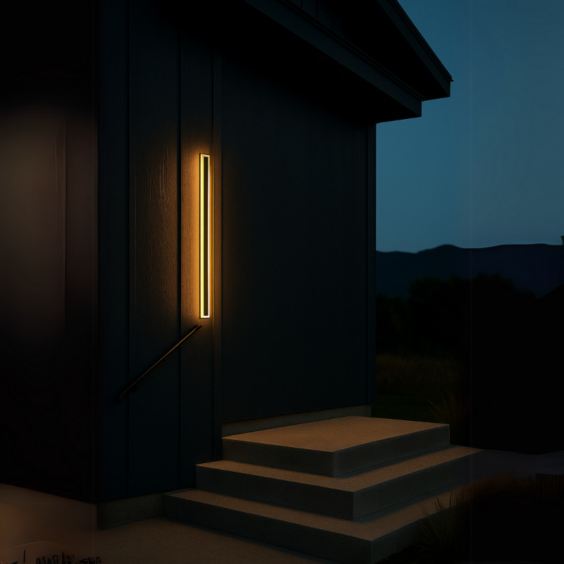 Aplica LED de exterior 90 cm, lumina neutra 4000K, 13W Aceasta aplica de exterior cu design vertical minimalist imbina eficienta iluminarii cu un aspect arhitectural bine definit. Cu o lungime de 90 cm si o latime discreta de doar 8 cm, se integreaza elegant pe fatade moderne sau clasice, adaugand ritm vizual fara a incarca spatiul. Puterea de 13W asigura o iluminare clara si constanta, ideala pentru zone de acces, terase sau fatade, contribuind atat la siguranta, cat si la estetica ambientului exterior. Lumina neutra de 4000K ofera un echilibru perfect intre tonuri calde si reci, creand o atmosfera placuta si functionala indiferent de momentul zilei. Montajul apropiat de perete (5 cm) confera un efect vizual de lumina indirecta, cu dispersie uniforma, punand in valoare textura suprafetelor si accentuand liniile arhitecturale ale locuintei. Recomandata pentru cei care cauta o solutie de iluminat exterior eficienta si rafinata, fara compromisuri in ceea ce priveste forma sau functionalitatea.