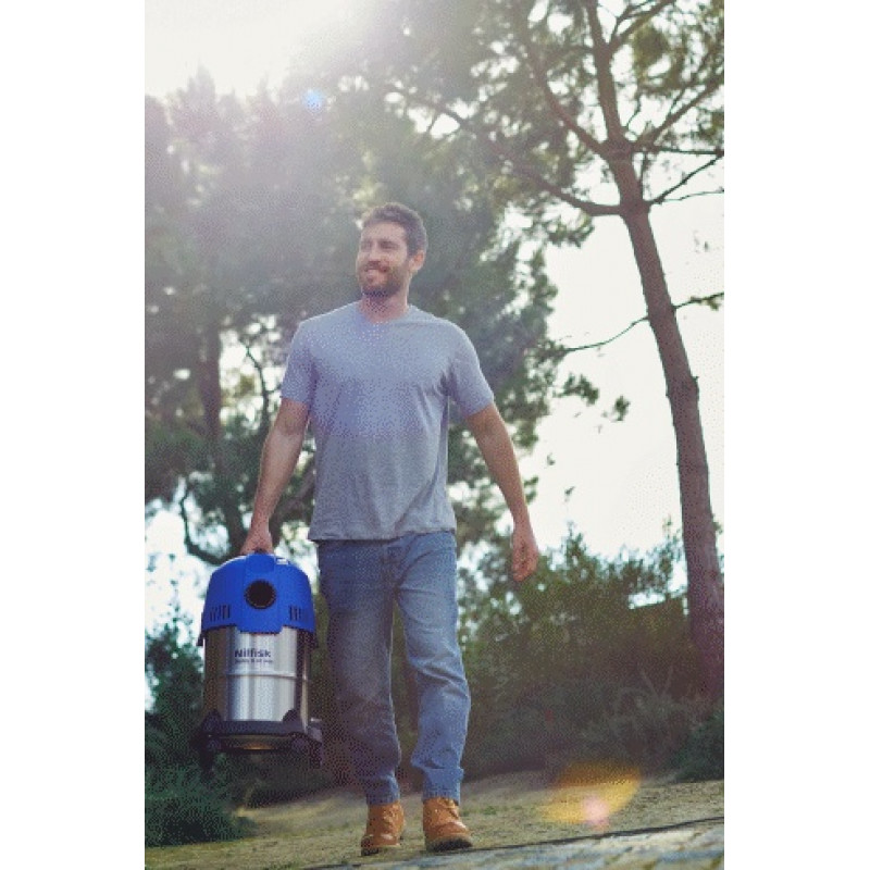 Nilfisk Buddy II 18 Inox este un aspirator umed și uscat compact, ușor, dar puternic, perfect pentru a face față sarcinilor de curățenie dificile în și în jurul casei, atelierului și garajului. Dispune de un recipient din oțel inoxidabil extrem de durabil.