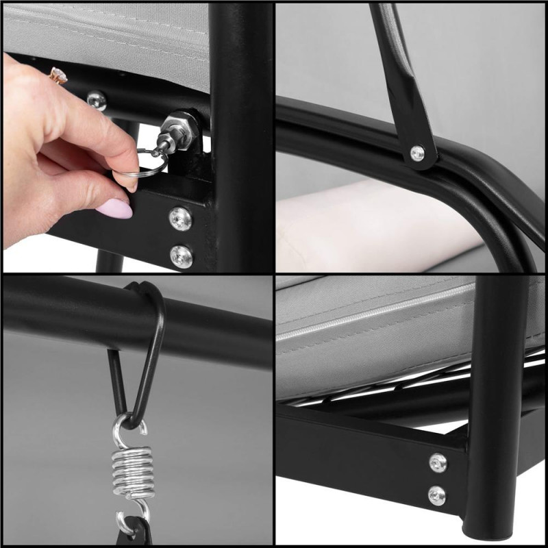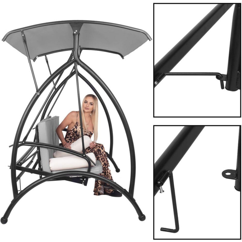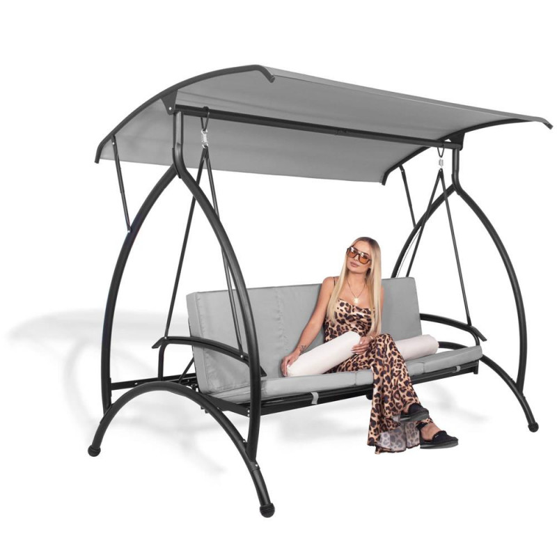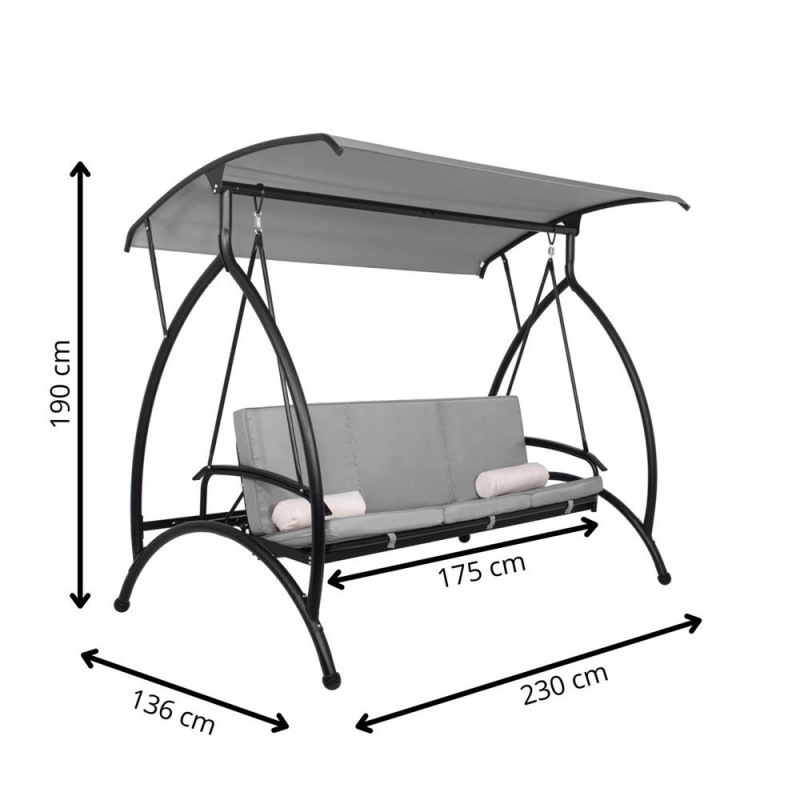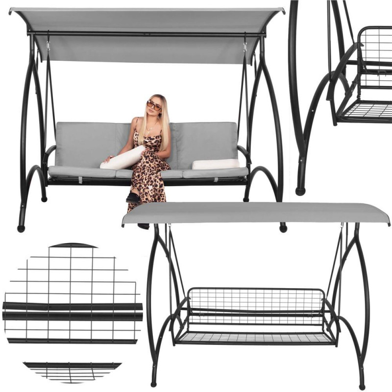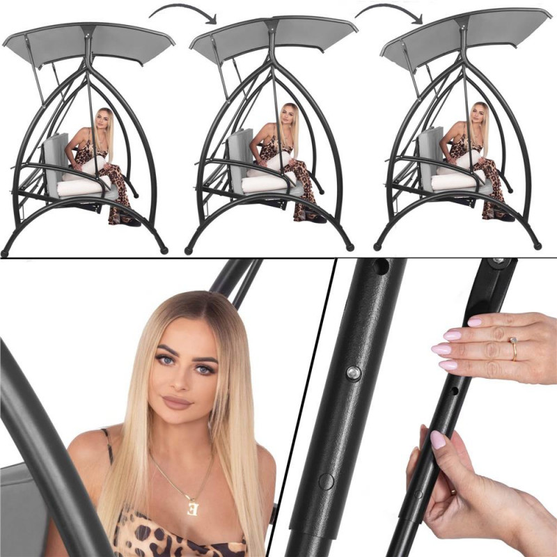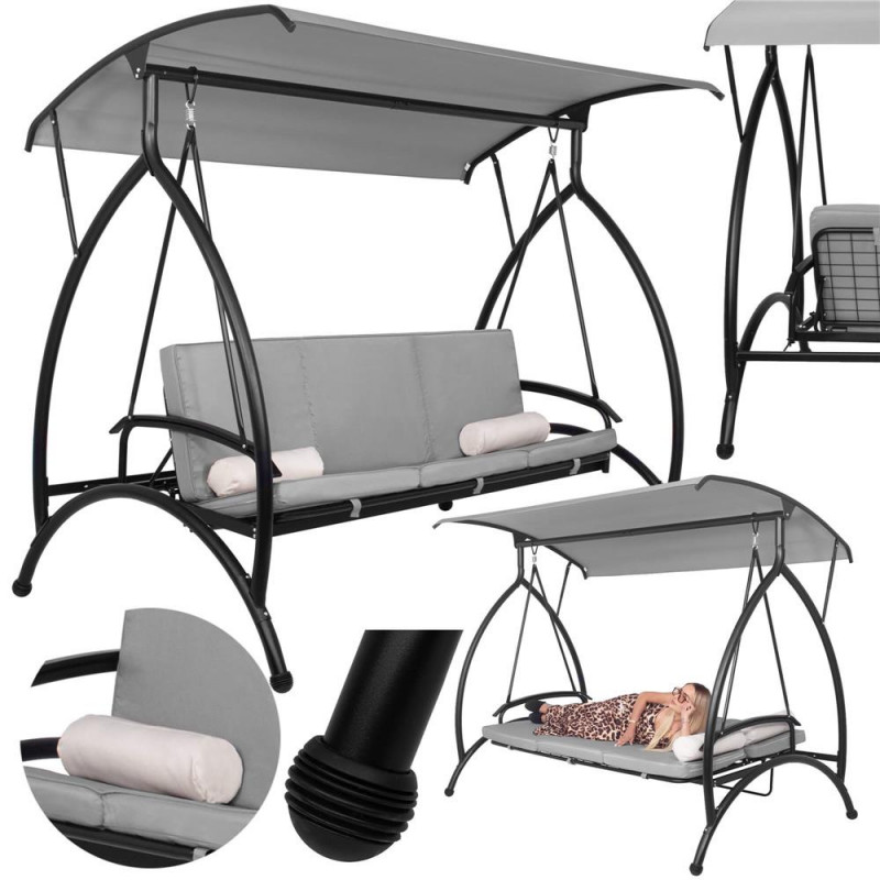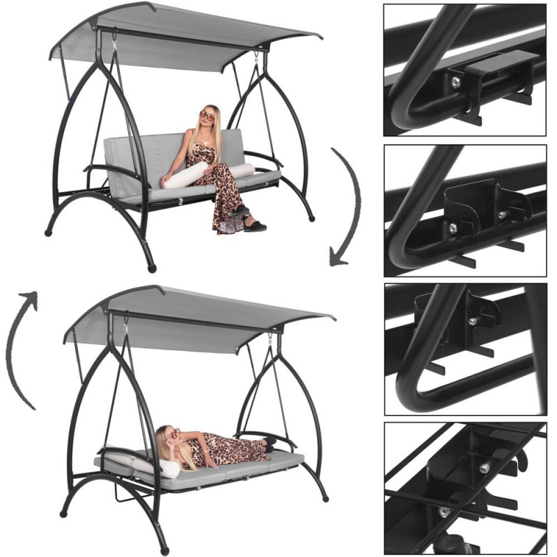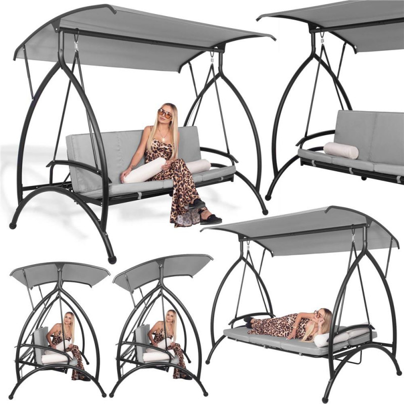 Scurta descriere Acest balansoar multifunctional ofera relaxare suprema in aer liber, transformandu-se usor din leagan intr-un pat confortabil. Cu perne groase, saltea segmentata, copertina reglabila si structura metalica rezistenta, este perfect pentru gradina, terasa sau foisor. Se poate bloca in pozitie fixa sau se poate balansa in functie de preferinte.
