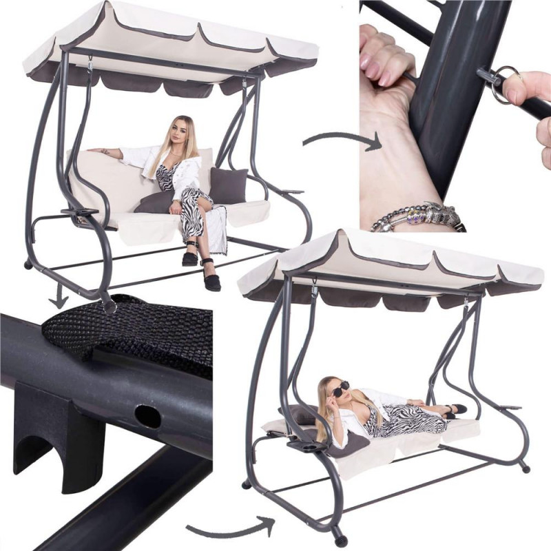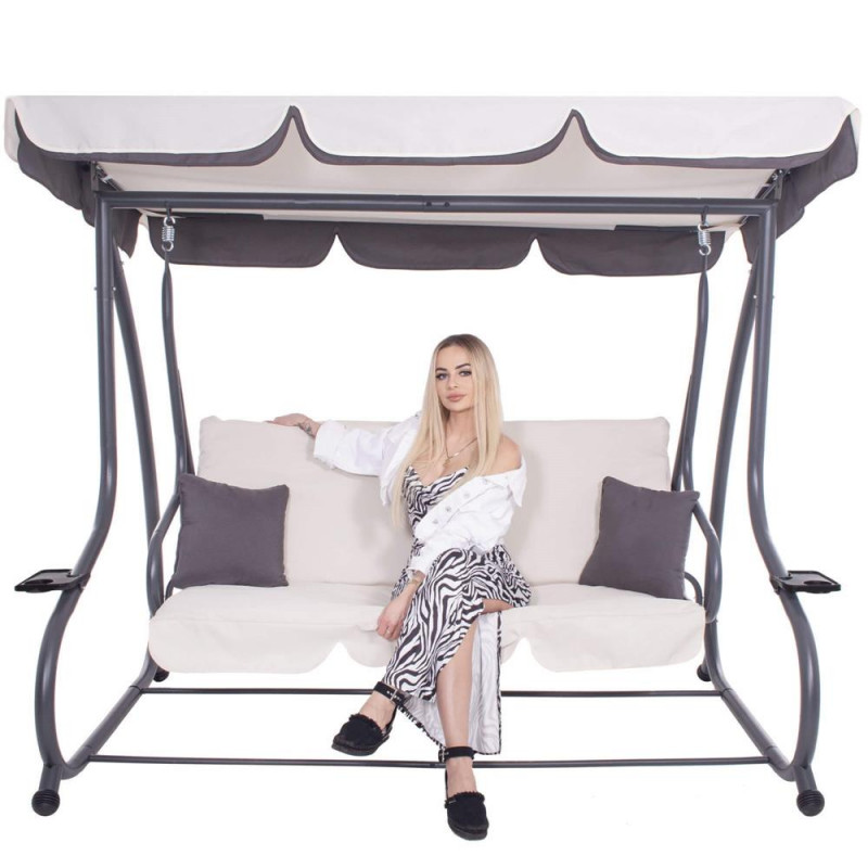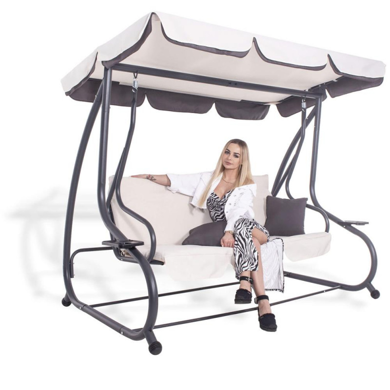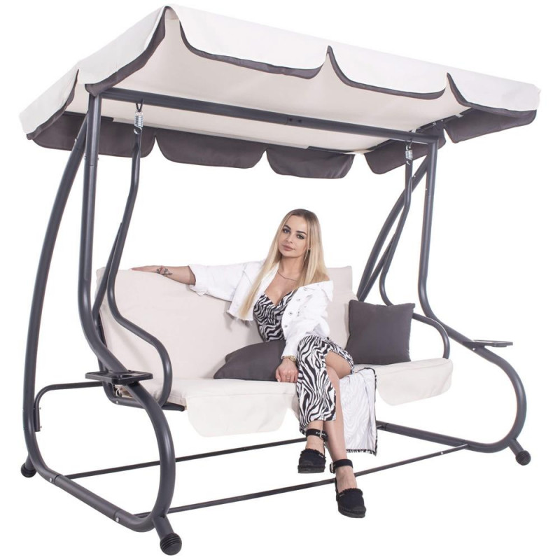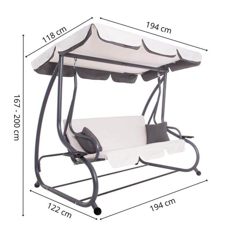 Inaltime totala: 200 cm Un leagan de gradina pentru trei persoane este un produs versatil. Un scaun confortabil cu posibilitatea de pliere intr-o pozitie culcata va va permite sa va relaxati pe deplin in aer liber dupa o saptamana de lucru. Structura stabila din tuburi groase, rezistente la deteriorare, acoperite cu pulbere. Capetele picioarelor sunt echipate cu elemente antiderapante, astfel incat leaganul poate fi folosit atat pe terasa, cat si in gradina. Un zavor care impiedica desprinderea spontana a scaunului asigura siguranta.