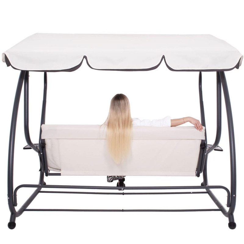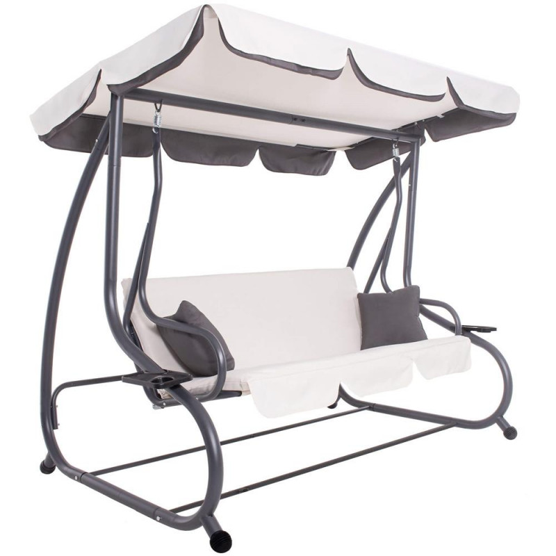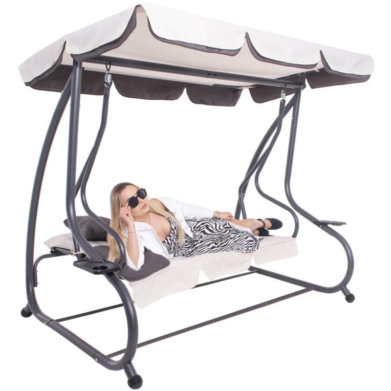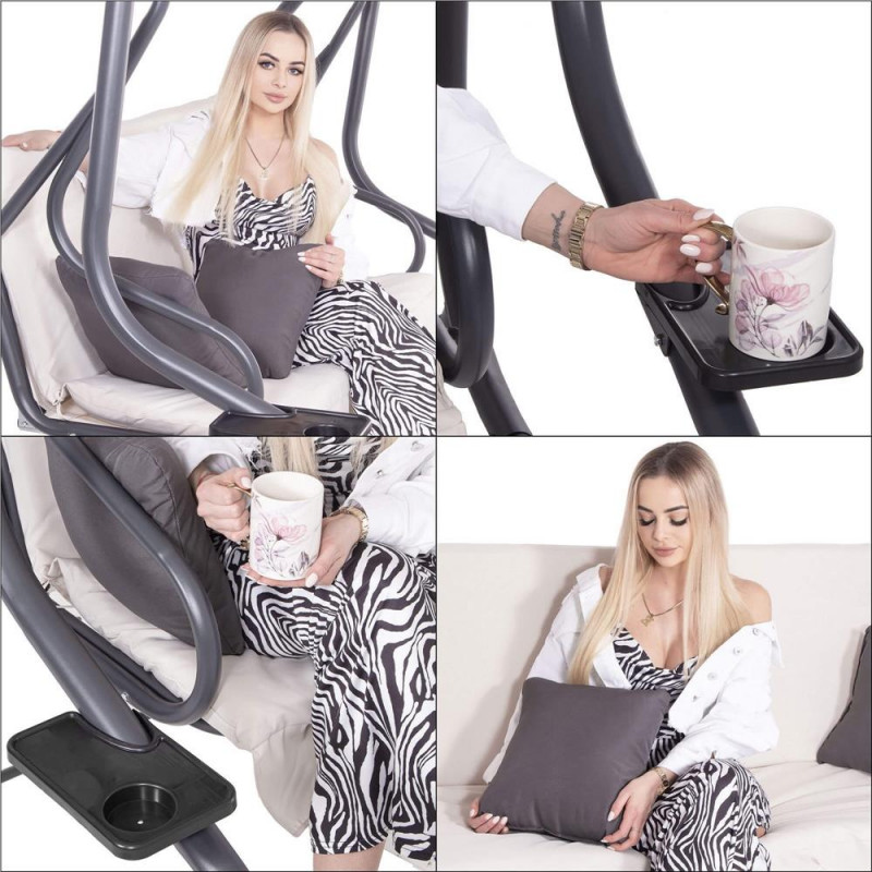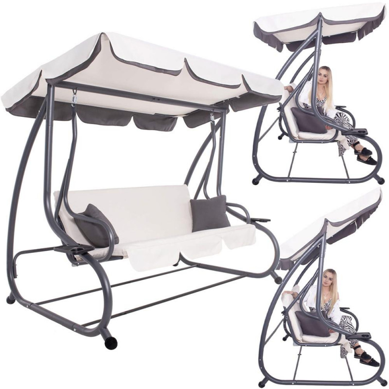 Inaltime totala: 200 cm Un leagan de gradina pentru trei persoane este un produs versatil. Un scaun confortabil cu posibilitatea de pliere intr-o pozitie culcata va va permite sa va relaxati pe deplin in aer liber dupa o saptamana de lucru. Structura stabila din tuburi groase, rezistente la deteriorare, acoperite cu pulbere. Capetele picioarelor sunt echipate cu elemente antiderapante, astfel incat leaganul poate fi folosit atat pe terasa, cat si in gradina. Un zavor care impiedica desprinderea spontana a scaunului asigura siguranta.