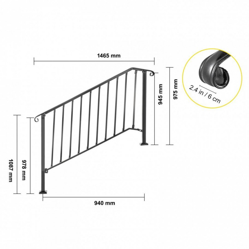 Balustrada fier forjat, 4-5 trepte Vivatechnix Negru Mat,