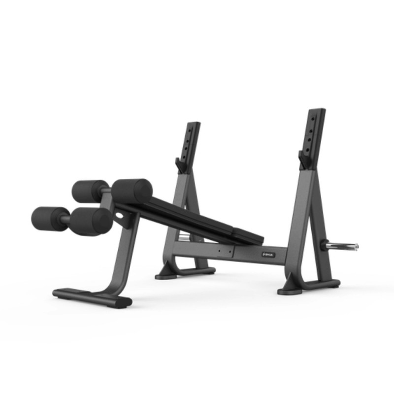 Prezentare generalăBanca piept declinată SH‑G6872 Olympic Decline Bench este construită pentru antrenamente de presă în poziție declinată (decline bench press) și exerciții pentru abdomen inferior. Este ideală pentru săli comerciale și utilizatori avansați care doresc stabilitate și confort în sesiunile intensive.Specificații tehniceModel: SH‑G6872 Olympic Decline BenchDimensiuni (L × l × Î): 1967 × 1734 × 1256 mm / 77 × 68 × 49 inGreutate netă / brută: ~71 kg / ~111 kg (~157 lbs / 245 lbs)Material cadru: oțel Q235A, profil 120 × 40 × 2.0 mm, finisaj profesional Black @ Silver@Tapițerie / padding: plăci din placaj + cycle cotton + spumă PU/EVA acoperite cu piele sintetică (negru închis) pentru confort ergonomicMusculatură antrenată: pectorali (în special zona inferioară), deltoizi și tricepsCaracteristici-cheiePad declinat lat (widened back pad) pentru susținere ergonomică completă și confort în timpul exercițiilor cu bară Olympic.Suporturi pentru picioare rezistente, acoperite cu spumă PU, ce oferă stabilitate și fixare sigură în timpul execuțiilor declinate.Construcție robustă, testată pentru rezistență în timp și utilizare repetată (peste 900.000 cicluri conform standardelor Seriei 68) .Stabilitate maximă, datorită bazei de dimensiuni mari și a structurii grele, ce previne balansul în timpul exercițiilor grele.Utilizare și mușchi lucrațiExcelent pentru exercițiile de Decline Bench Press, care vizează în mod eficient mușchii pectorali inferiori, dar implică și deltoizii anteriori și tricepsul.Poate fi utilizată și pentru decline sit-ups sau crunch-uri cu greutăți, stimulând zona abdominală inferioară și core-ul.Tabel sumarCaracteristicăDetaliiModelSH‑G6872 Olympic Decline BenchDimensiuni (L×l×Î)1967 × 1734 × 1256 mm / 77 × 68 × 49 inGreutate netă / brută71 kg / 111 kgCadrulOțel Q235A 120×40×t2.0 mm (rezistent și profesional)PaddingPlăci + PU/EVA + piele sintetică (megru închis)Grupe musculare vizatePectorali inferiori, deltoizi anteriori, triceps, abdomen inferiorTestare durabilitate@900.000 cicluri conform Seria 68StabilitateBază extinsă, suport picioare și structură solidă
