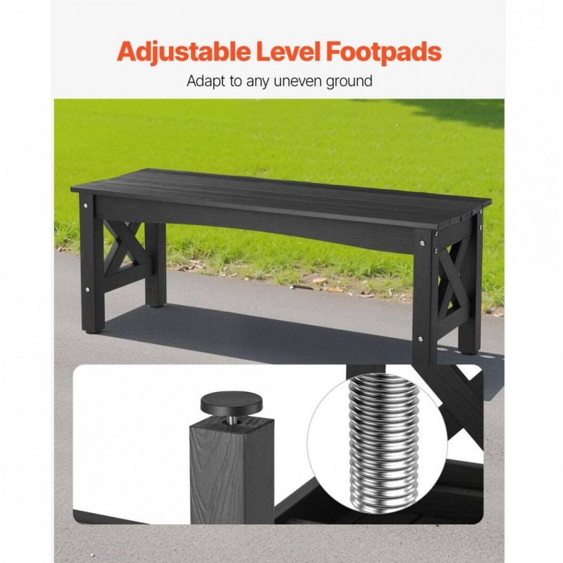 picior al bancii de parc include o perna reglabila pentru picioare, ideala