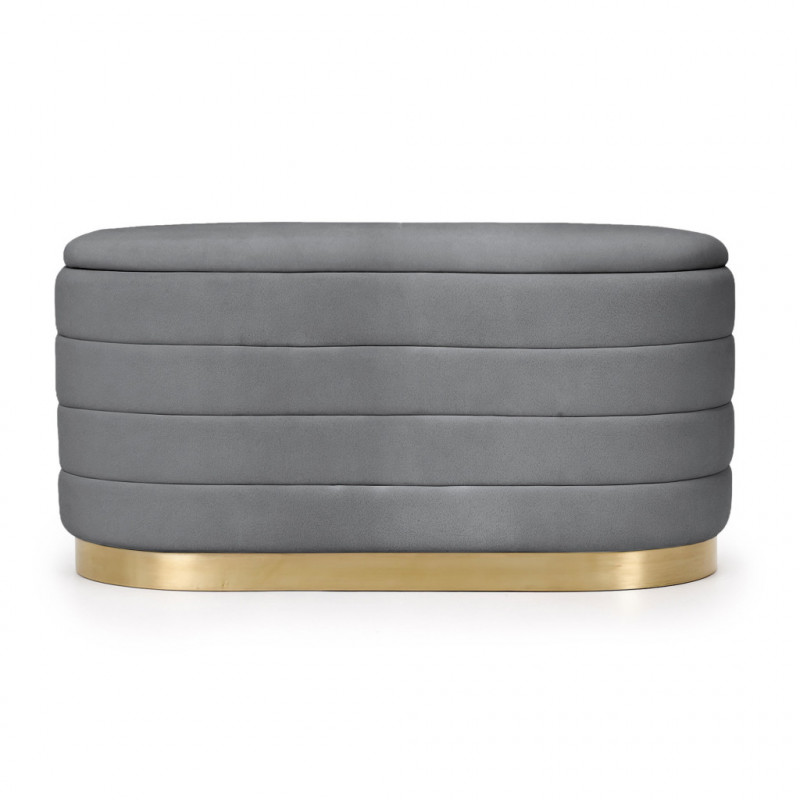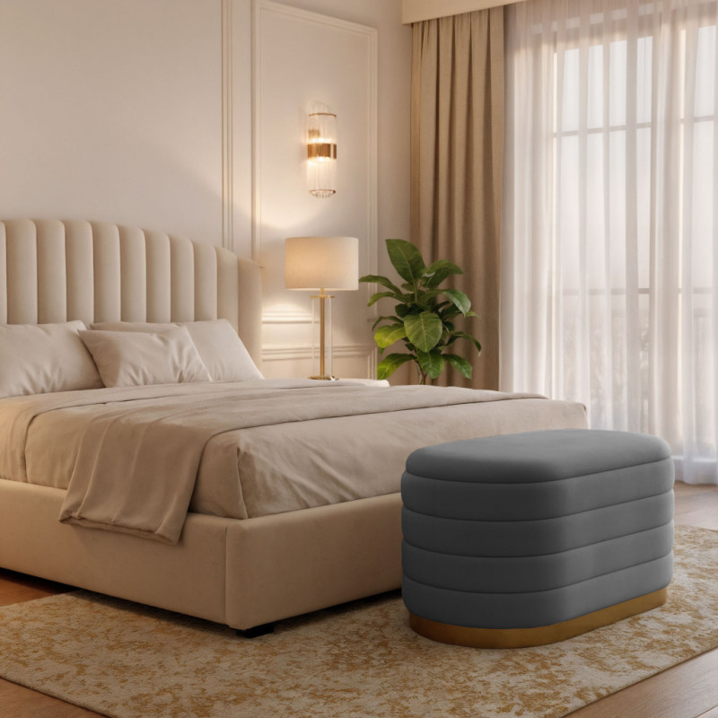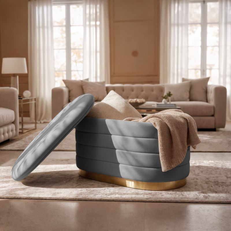 Scurta descriere Bancheta tip puf Bella cu spatiu de depozitare, realizata din velur fin la atingere, ideala pentru interioare elegante si rafinate. Compartimentul interior permite depozitarea discreta a obiectelor, iar designul modern glamour completeaza armonios livingul, dormitorul sau holul.