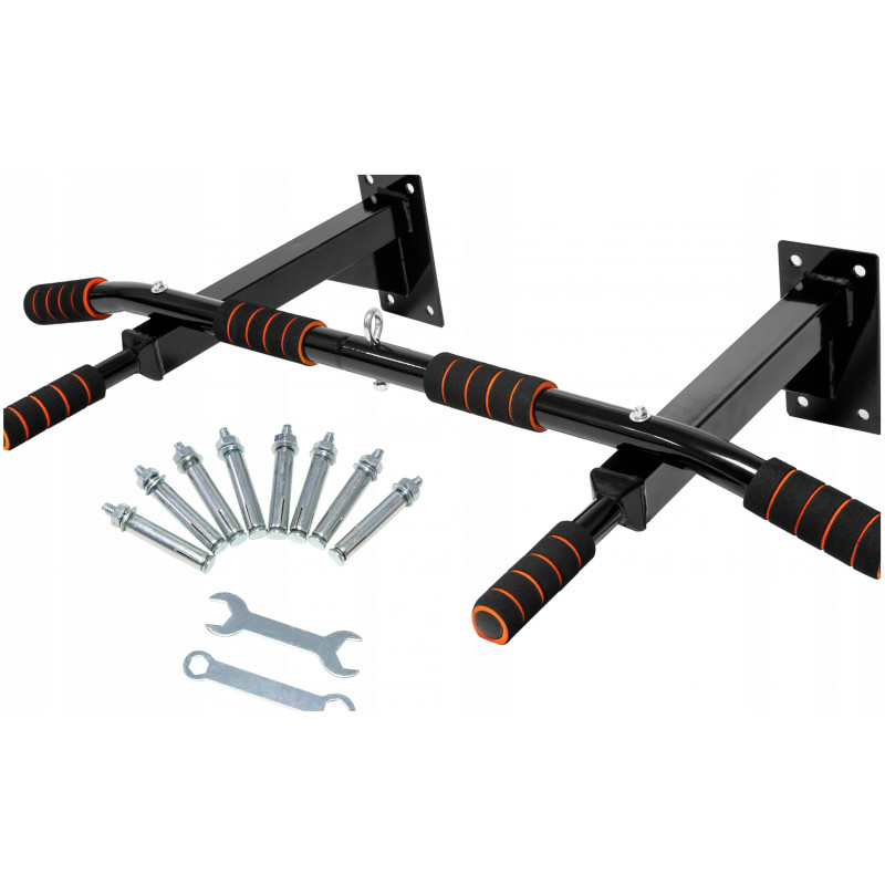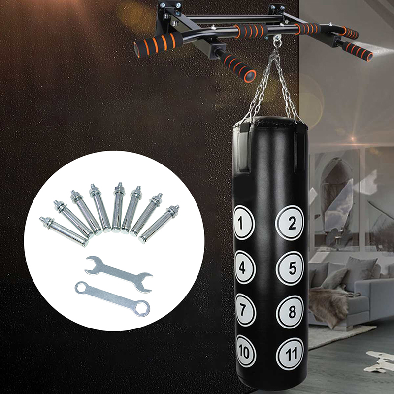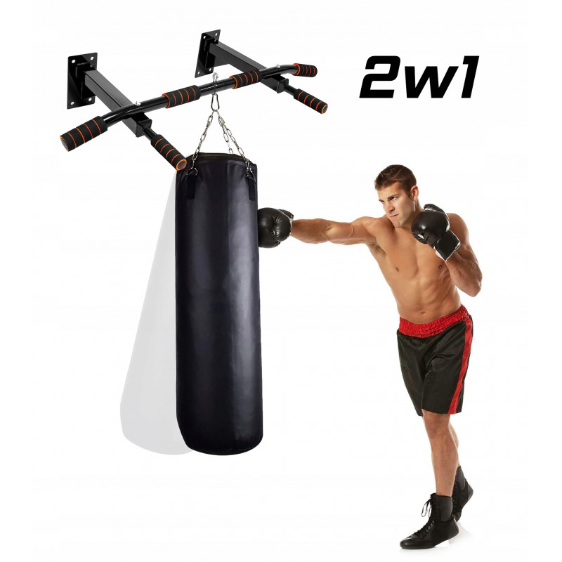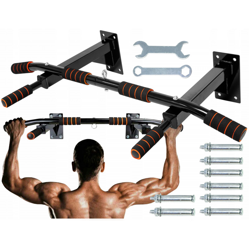 stifturi de montare Bara profesionala de perete/plafon din otel inoxidabil, acoperita cu spuma de neopren pentru o mai buna aderenta la ridicare. In timpul tractiunii sunt lucrate multe grupe musculare, inclusiv bicepsul, tricepsul, muschii spatelui, antebratele si muschii umerilor. Bara are 3 prinderi diferite: lat paralela cu peretele, paralela cu peretele, ingusta paralela cu peretele, neutra perpendiculara pe perete. Daca lucrati mult in fata calculatorului si aveti probleme in a va mentine postura verticala, bara este, de asemenea, o optiune excelenta pentru a lua o pauza de la munca si pentru a intinde muschii obositi ai spatelui. Un alt plus al barei este ca ocupa relativ putin spatiu in raport cu multitudinea de exercitii pe care le ofera in schimb. Manerul suplimentar va permite sa o transformati rapid intr-un suport pentru un sac de box.
