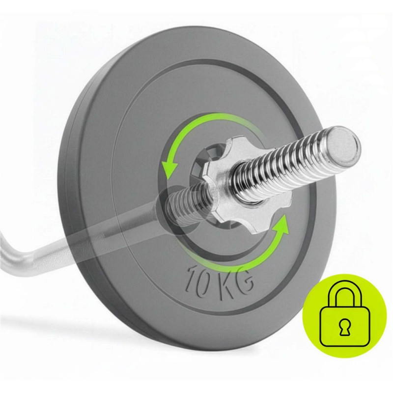 Continut pachet: 1x bara curbata accentuat pentru greutati cu garnituri din cauciuc 2x coliere filetate cu garnituri din cauciuc