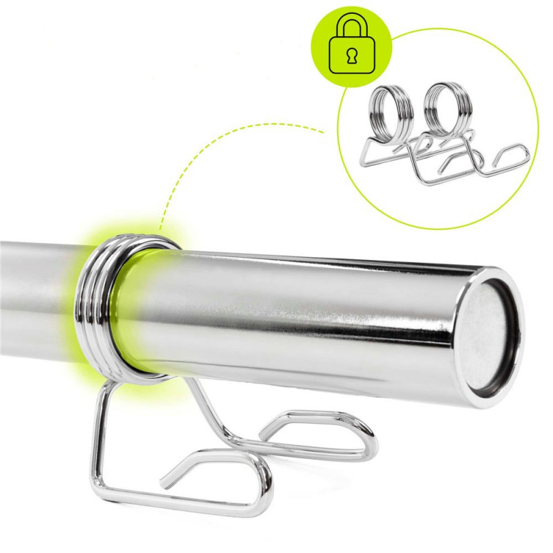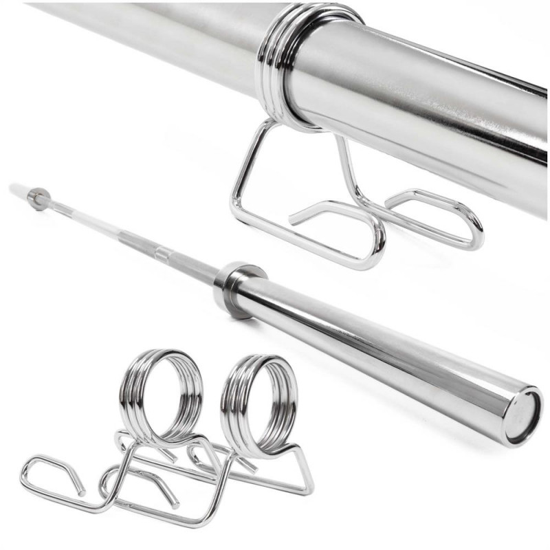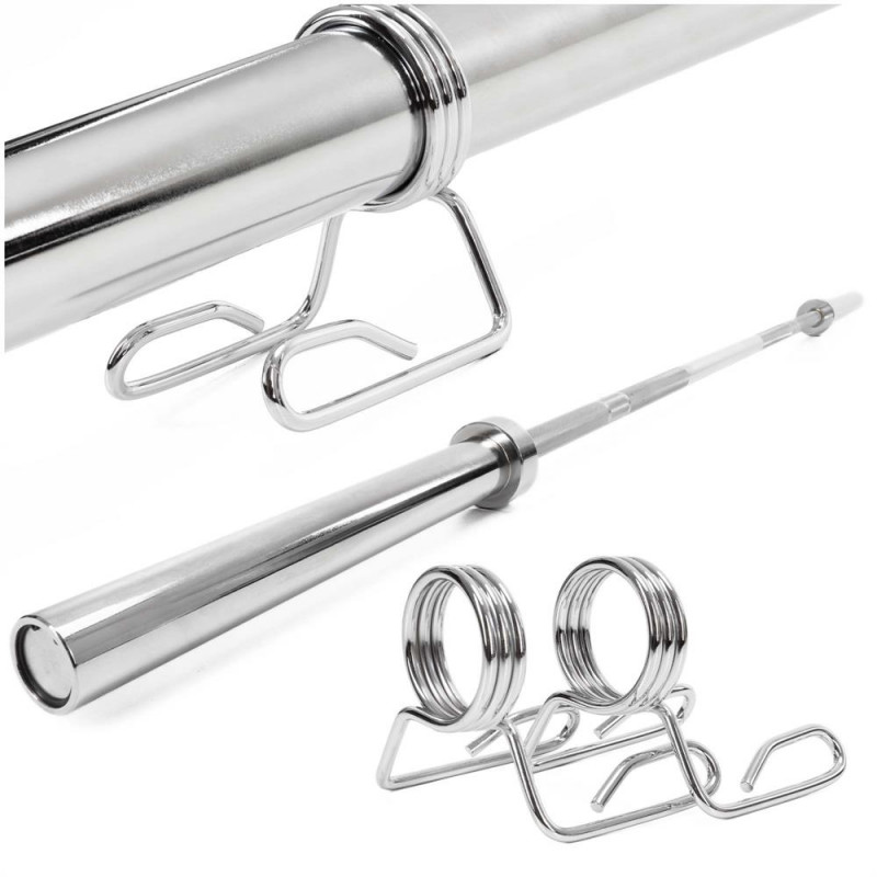 Continut pachet: 1x bara olimpica pentru greutati 2x coliere cu arc pentru fixare discuri