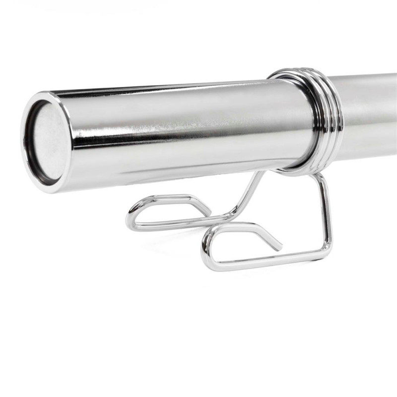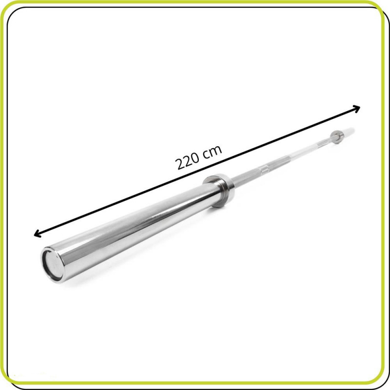 Scurta descriere: Bara olimpica pentru greutati, realizata din otel cromat rezistent, proiectata pentru antrenamente intense de forta. Zona de incarcare rotativa reduce stresul asupra incheieturilor si permite miscari fluide. Compatibila cu discuri olimpice de 50 mm.
