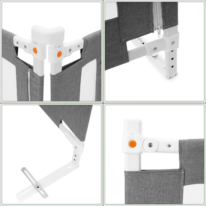Scurta descriere: Bariera de protectie pentru pat, conceputa pentru siguranta copiilor in timpul somnului. Reglajul pe inaltime permite adaptarea la diferite tipuri de paturi, iar tesatura rezistenta cu plasa ofera vizibilitate si aerisire optima.