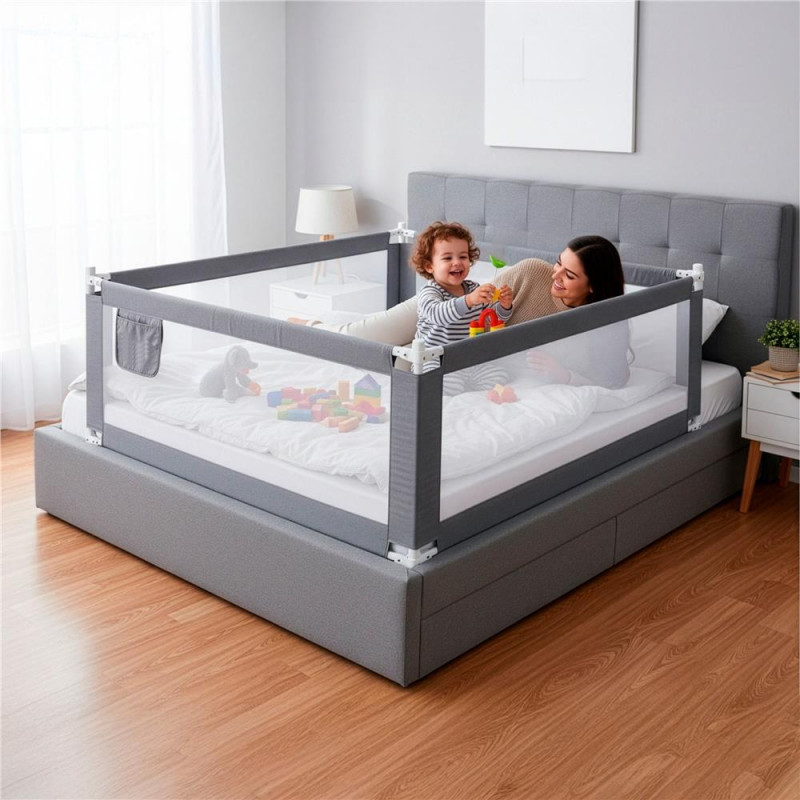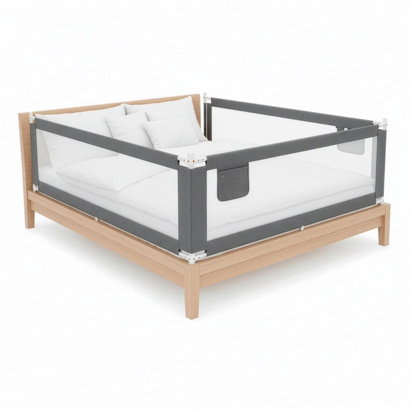 Scurta descriere: Bariera de siguranta pentru pat, conceputa pentru a preveni caderea copiilor in timpul somnului. Structura solida, cu inaltime reglabila si material textil rezistent, ofera protectie eficienta si confort in utilizarea zilnica.