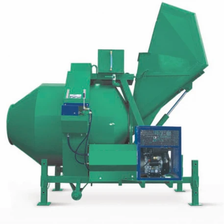 Betoniera hidraulica cu tambur orizontal reversibil. Ideal pentru șantiere de mari dimensiuni.