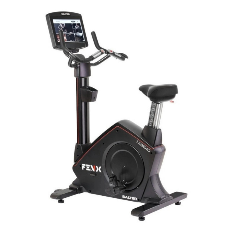 Bicicleta verticală FENX de la Salter este un aparat cardio comercial de înaltă performanță pentru săli sau utilizare profesională. Structură solidă din oțel armat, ecran tactil 16″ conectabil la aplicații precum FIT RECORD®, STRAVA® sau Trainingym® şi greutate maximă utilizator 180 kg. Soluția completă pentru antrenamente eficiente și monitorizare inteligentă.SPECIFICATII TEHNICE- Structură din oțel armat extrem de rigidă.@- Tratament prin cataforeză pentru a evita problemele de oxidare a structurii.@- Scaun de mare confort cu spumă respirabilă de înaltă densitate.@- Înălțime a scaunului reglabilă prin piston cu gaz. Cu acest sistem utilizatorul poate regla înălțimea scaunului în timp ce stă pe scaun.@- Ghidon anatomic cu plăcuțe de susținere reglabile.@- Mânere antialergice.@- Butoane de acces rapid (+/-) pe ghidon care permit utilizatorului să modifice confortabil rezistența de lucru în timpul exercițiilor.@- Măsurarea pulsului prin senzori de contact încorporați în ghidon pentru o citire confortabilă și imediată a pulsului.@- Măsurarea pulsului prin intermediul unui sistem de senzori fără fir inclus în panoul de afișaj (centura nu este inclusă). Acest sistem vă permite să vă monitorizați confortabil ritmul cardiac în timpul exercițiilor fizice de intensitate ridicată.- Ecran tactil de 16” cu conectivitate completă la ecosistemul SALTER Ecosistem: acces la aplicația FIT RECORD®, acces la S CLOUD®, compatibil cu TRAININGYM și STRAVA...@- Mai multe limbi disponibile.@- Personalizarea ecranului principal cu logo-ul unității.@- Multiple opțiuni disponibile: pornire rapidă, 7 programe predefinite, 4 programe HRC, programul Watts, programe pe obiective, plimbări virtuale, teste fizice, etc.- Multimedia cu acces la aplicații de divertisment cum ar fi Youtube, Spotify, Google, Netflix, etc.- Televiziune fără cablu (IPTV).@- Funcție Mirror Cast.@- Compatibil cu căștile fără fir.@- Acces la nivel de utilizator la toate antrenamentele efectuate prin aplicația FIT RECORD® App.@- Manager de activitate: toate informațiile privind utilizarea echipamentelor este disponibilă la instalarea acestora.@- Suport pentru tabletă pe panoul de control.@- Suport pentru sticle.@- Stabilizatoare reglabile.@- Roți spate pentru deplasare ușoară.@- Greutatea maximă a utilizatorului: 180 kg.@- Dimensiuni: 71 x 71 cm: 119 x 71 x 149 cm.@- Intrare : 220 V / 50-60 Hz / 1,0 A MAX.@- Ieșire : 12,0 V / 3,0 A / 36,0 W@- Utilizare comercială.